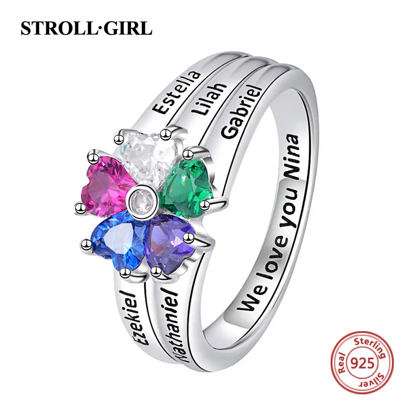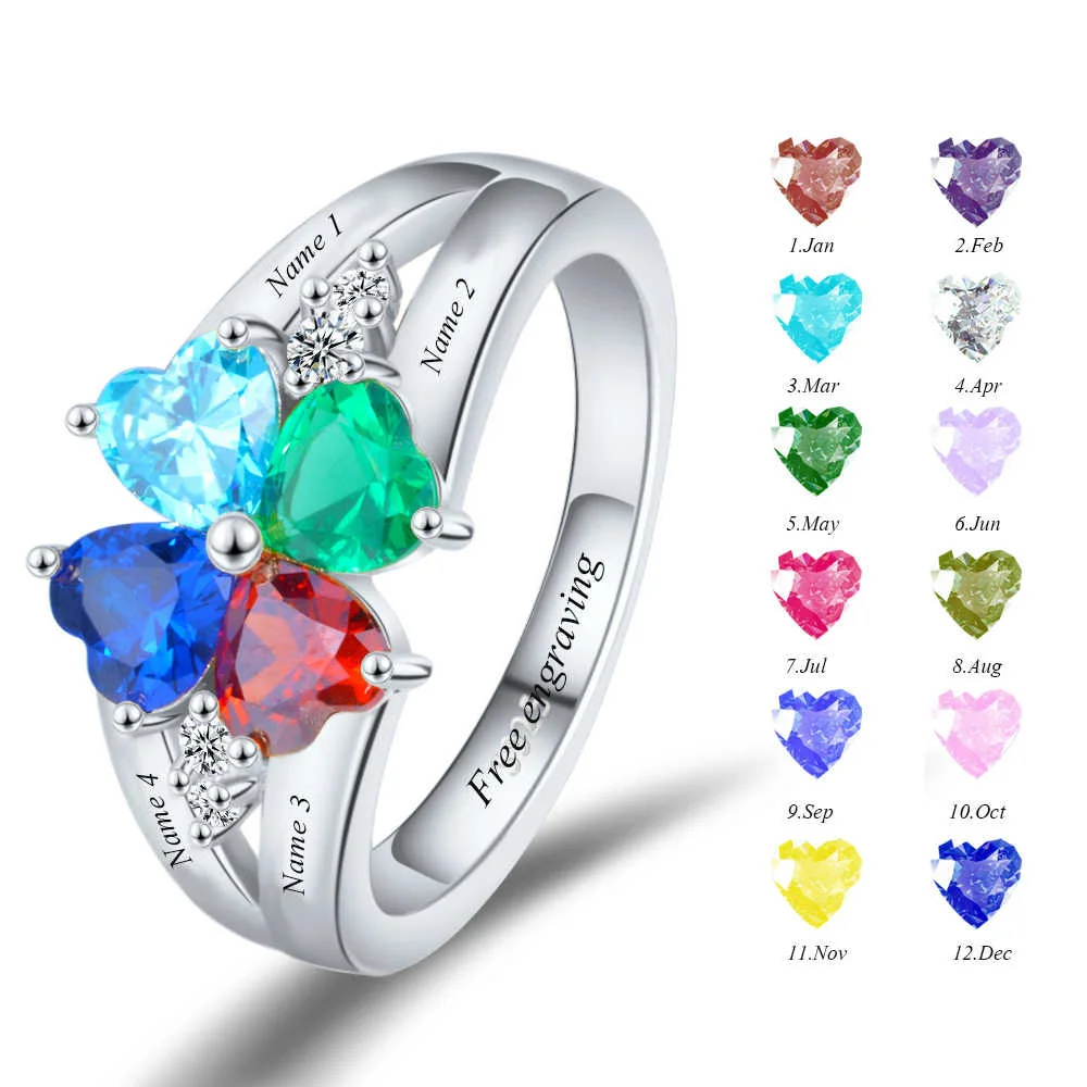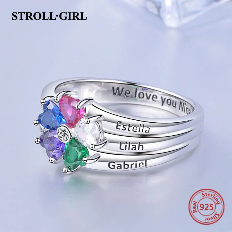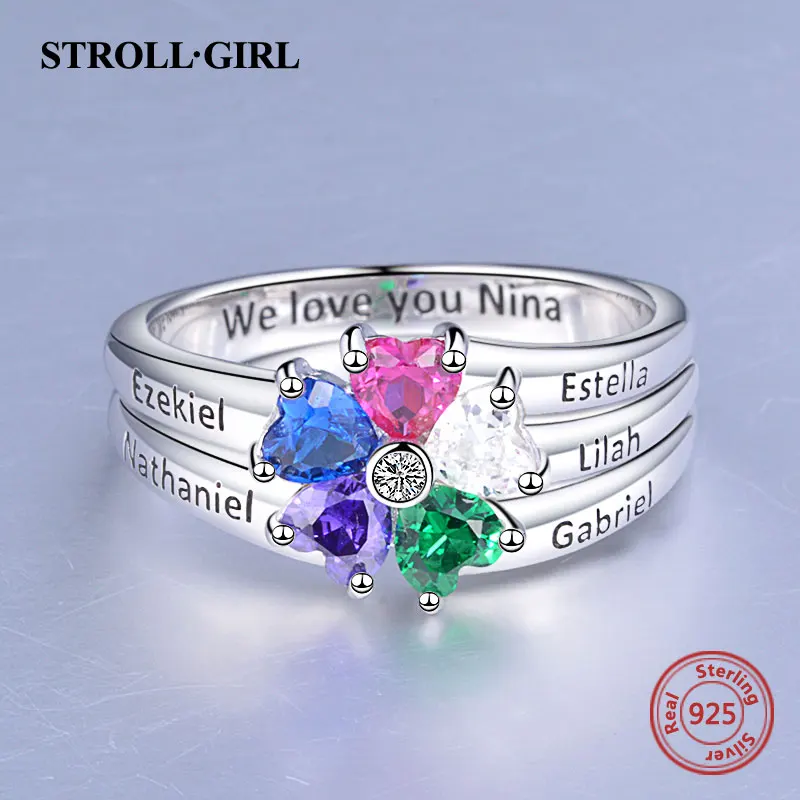 2020 персонализированные ювелирные изделия камень-талисман в форме сердца индивидуально выгравироанные надписи имена кольца для Для женщин 925 пробы Серебряное кольцо подарок Бесплатная доставка
