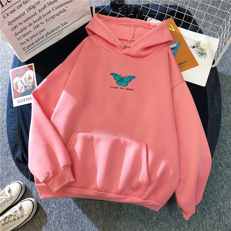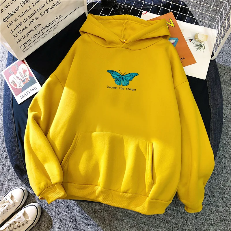 Женская толстовка с капюшоном, зимняя, с принтом бабочек, в стиле Харадзюку