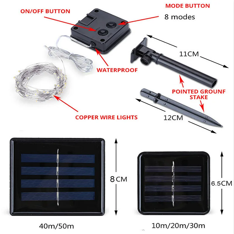 Водонепроницаемая светодиодная гирлянда на солнечной батарее s 100200300500, уличная сказочная светодиодная гирлянда на солнечной батарее, праздничное Рождественское украшение для сада