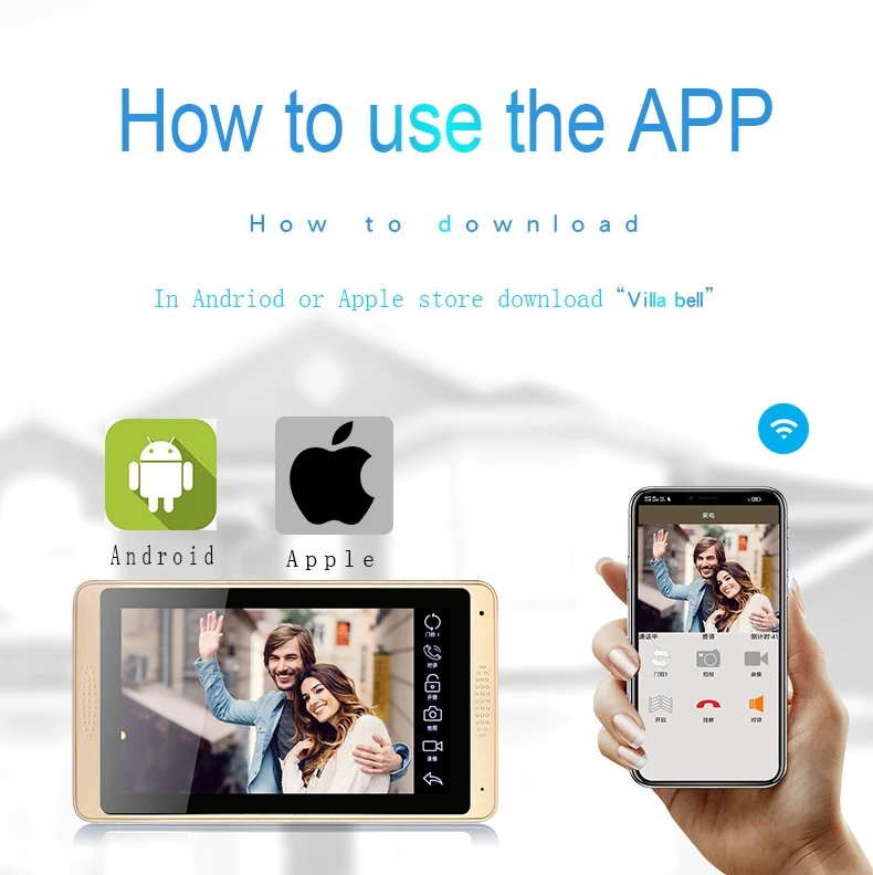 Easy installation by yourself with the adapter and cable we provided in this kit,outdoor unit can connect to indoor monitor by wired 4P cable.When indoor monitor connected to your wireless wifi router,you can connect mobile phone to indoor monitor,then mobile phone also can record video or open the door etc.Widely used in villas, apartments, houses, hotels, offices, public buildings and so on.