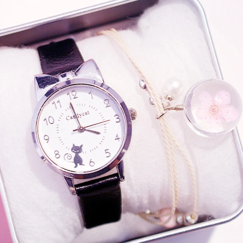 Часы женские кварцевые с кошачьими ушками, повседневные модные нару...