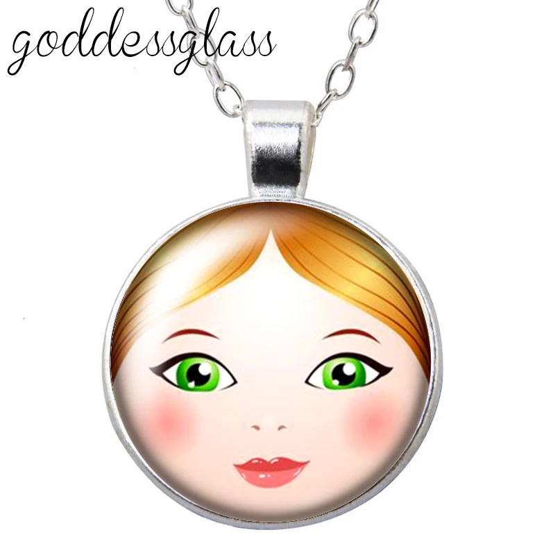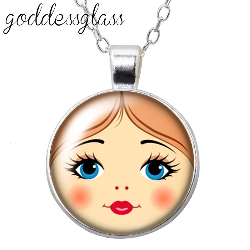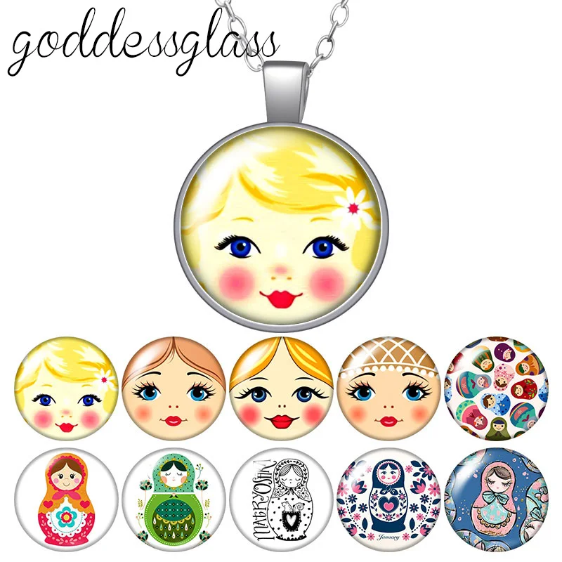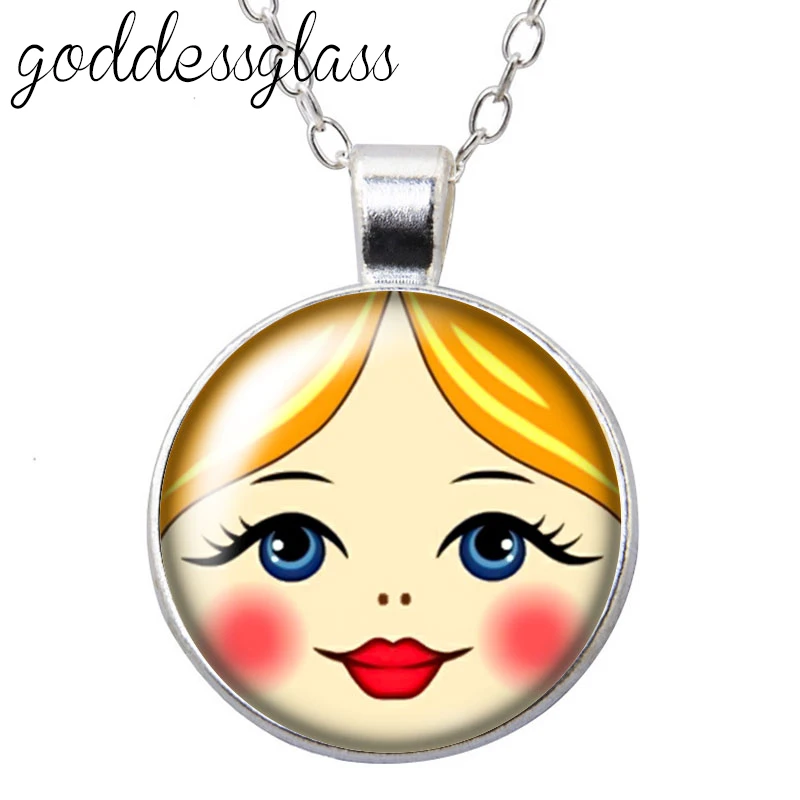 Русские игрушки Матрёшка милая девушка лицо круглое стекло кабошон посеребренныйхрустальный кулон ожерелье ювелирные изделия в подарок