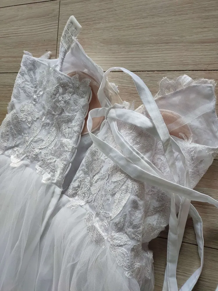 Белое Тюлевое платье-трапеция с аппликацией, свадебные платья на бр...