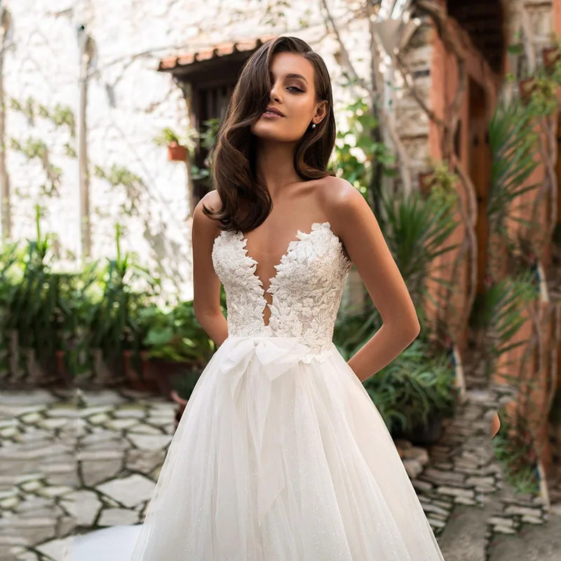 Женское свадебное платье с V-образным вырезом, с кружевной аппликацией