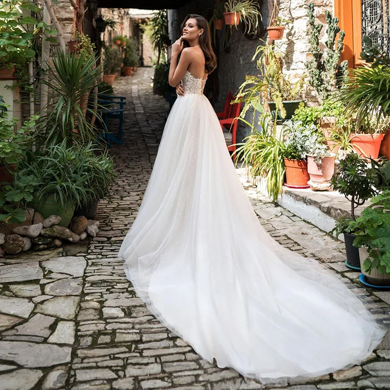 Современное свадебное платье сердечком спагетти трапециевидный корс...