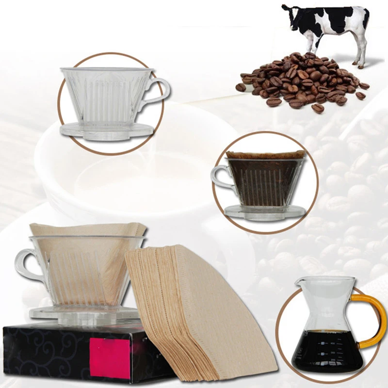 100 шт., деревянная кофеварка, сменные профессиональные бумажные фильтры, неотбеленные конусные фильтры для капельного кофе, 2-4 чашки, инструмент для эспрессо