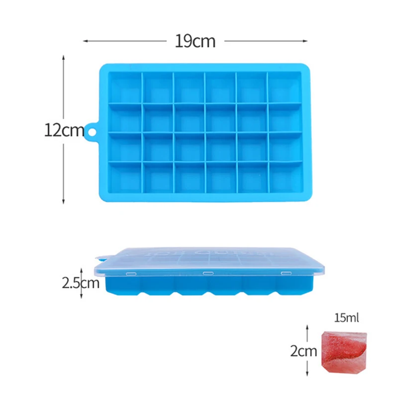 Силиконовый кубик льда с крышкой, 24 ячейки, экологически чистый лоток, кубики льда, форма для фруктов, льдогенератор для вина, виски, бара, инструмент для холодных напитков