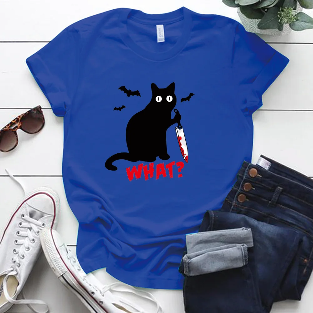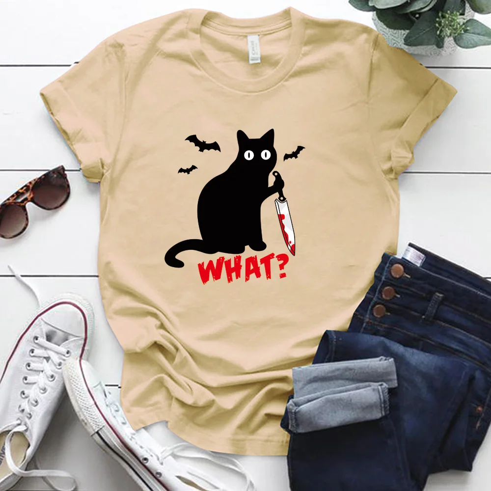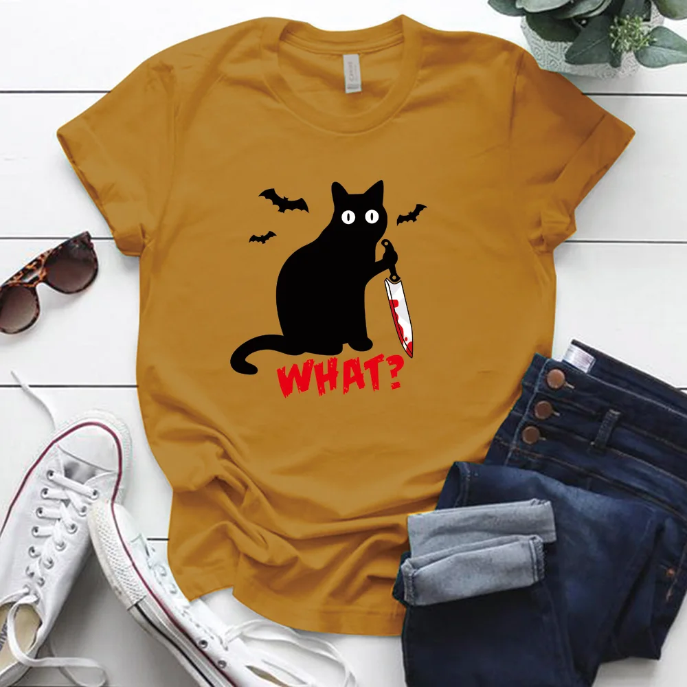 Женская футболка с коротким рукавом и принтом «черная кошка»