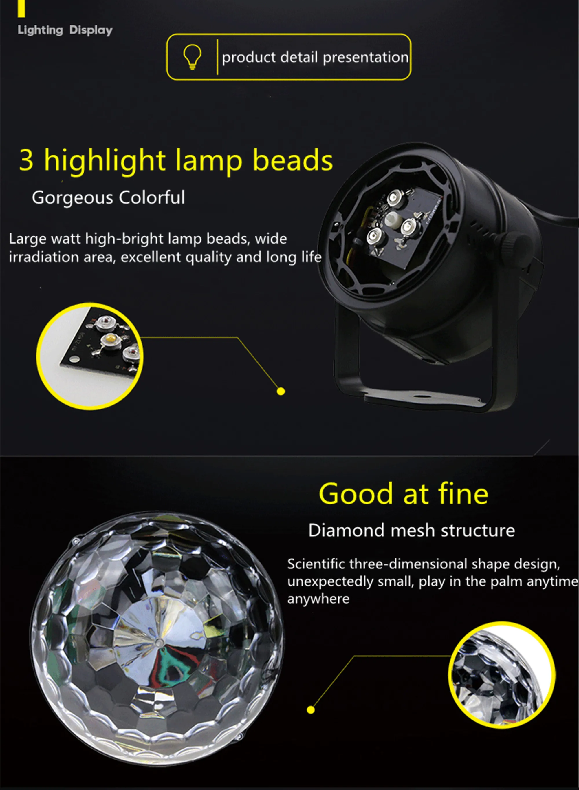 Звуковая активация вращающийся чешское стекло диско шар DJ Вечерние огни 3 Вт 3 светодиодный RGB светодиодный сценический свет для Рождественские Свадебные звук Вечерние огни