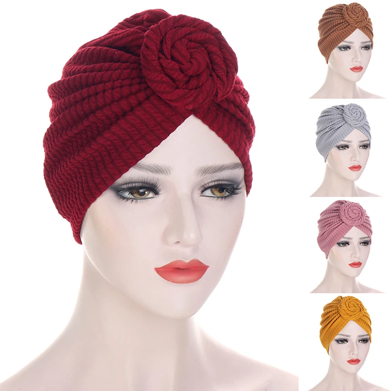 Женские однотонные Цвет лента для волос тюрбан Кепка женская мусульманская шапка капот цветочный узел головных уборов ночной колпак лента для волос аксессуары для волос
