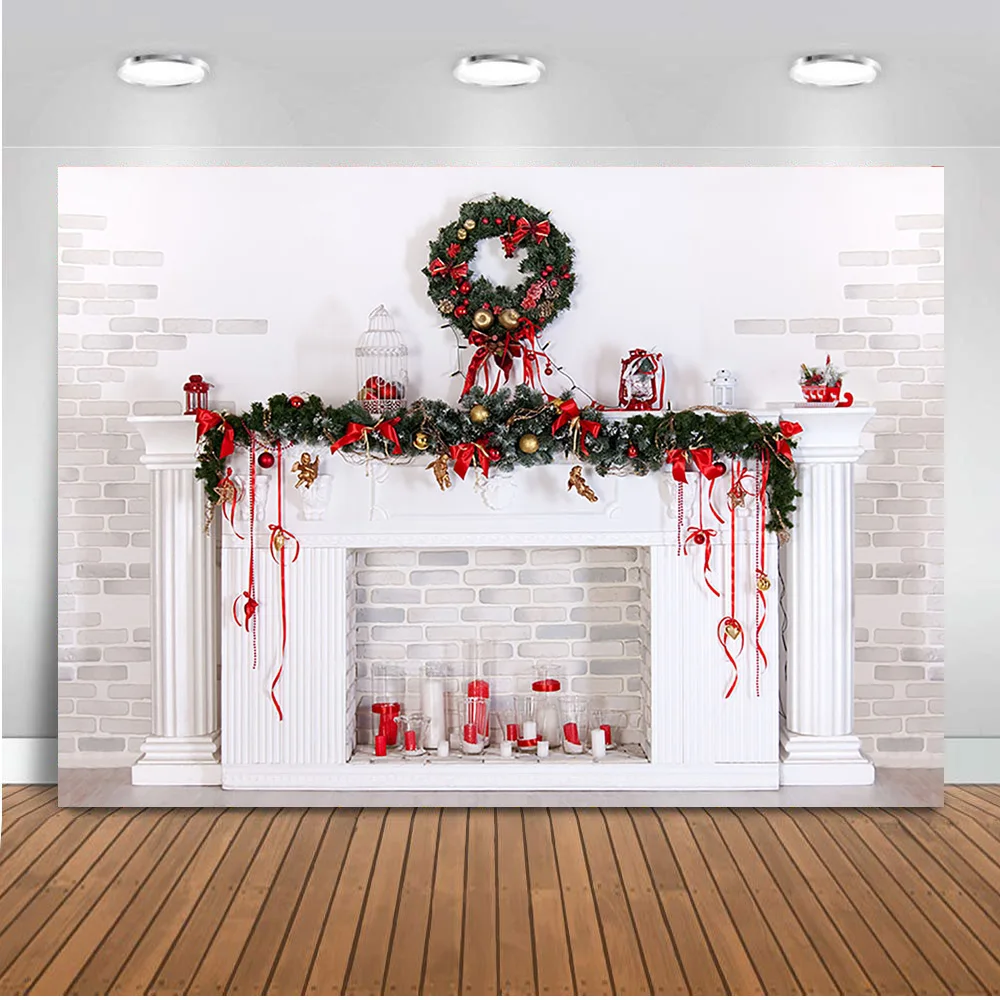 Фон для фотосъемки Рождественский кирпичный камин фон для фотосъемки красный венок белая свеча фон для гостиной для фотостудий