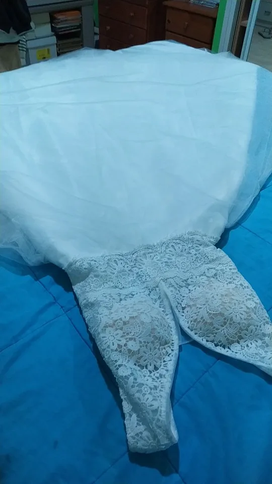 Платье очень красиво изготовлено, и запрос продавца на изменение (уменьшение декольте, удаление тренда) Кружево отличается от этого на картинке, что не меняет того, что я очень доволен вашей покупкой. Нижняя часть платья неровная, требует изменений.