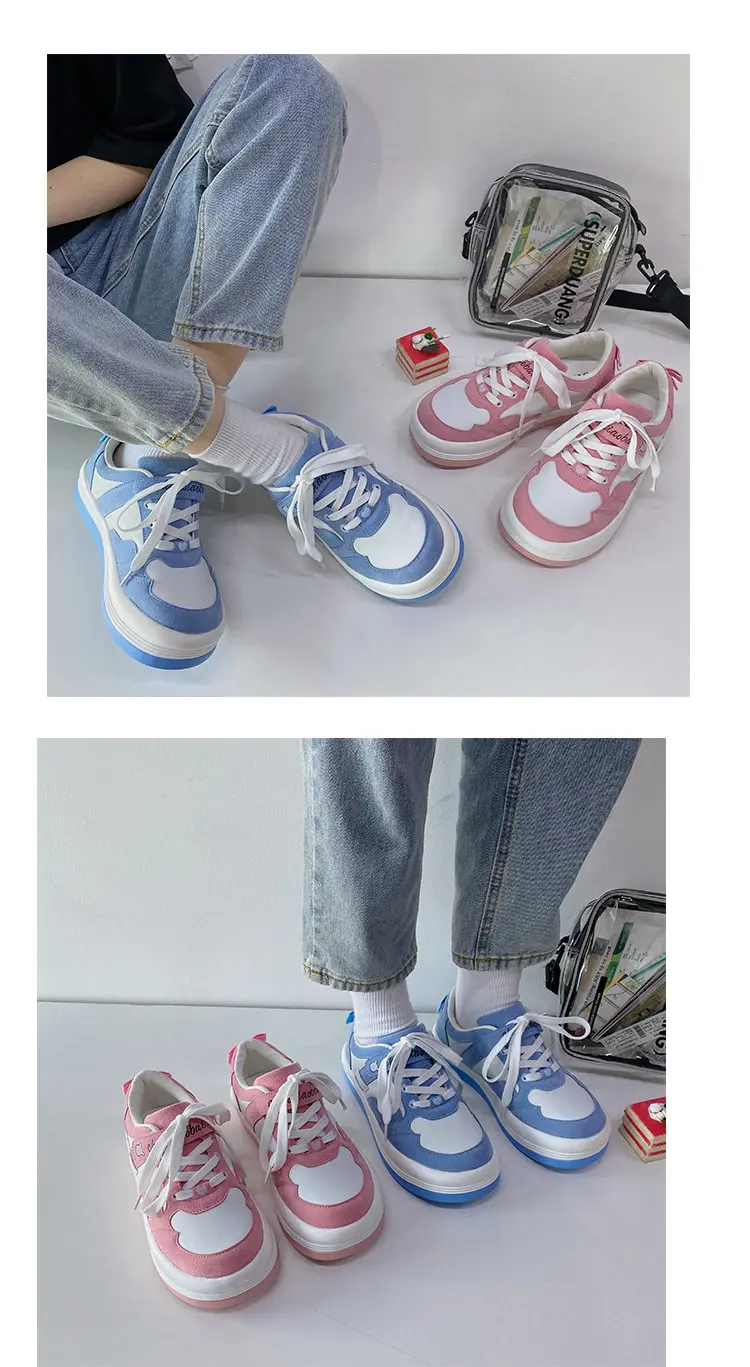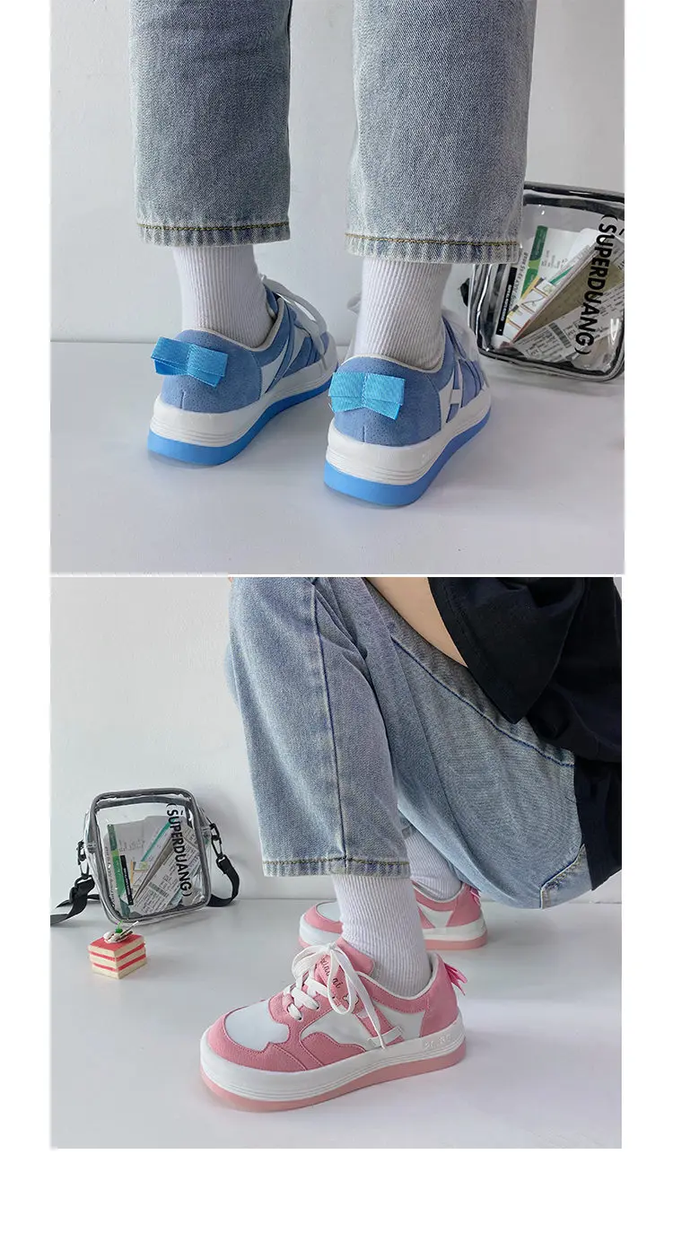 Женские кроссовки в стиле «Лолита»; Милые розовые и синие туфли с круглым носком в стиле «Харадзюку»; Женские повседневные японские туфли в стиле «колледж»; Kawaii