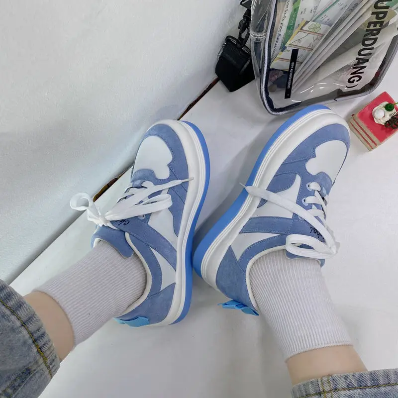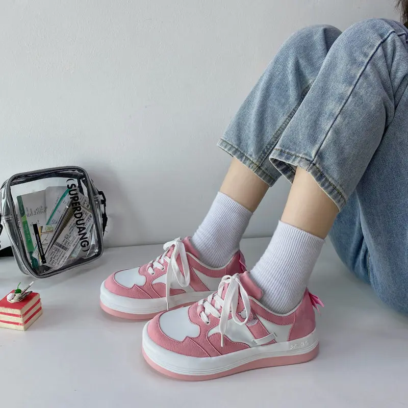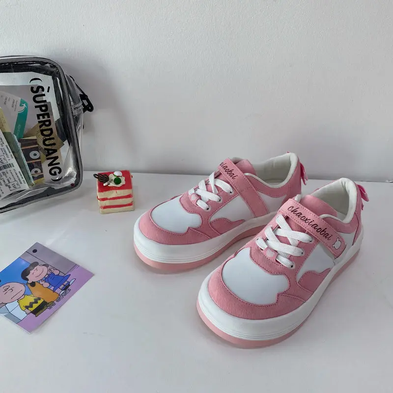 Женские кроссовки на платформе Kawaii, Винтажная обувь с круглым но...