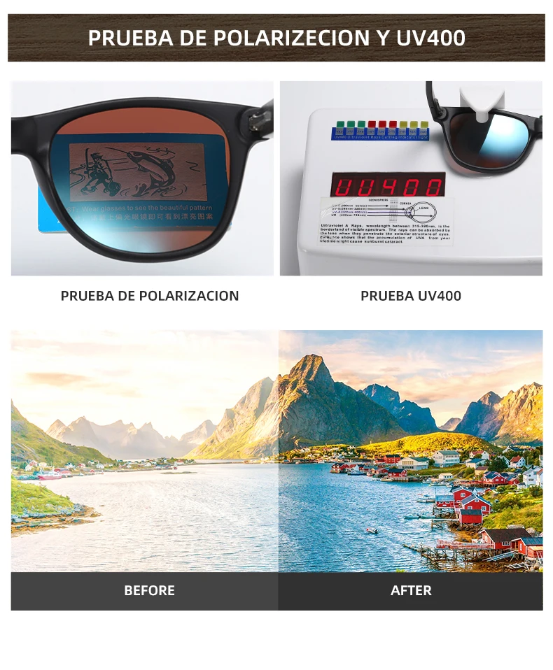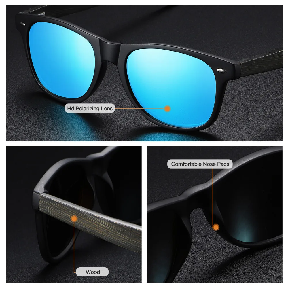 Солнцезащитные очки с бамбуковыми дужками, поляризационные, UV400