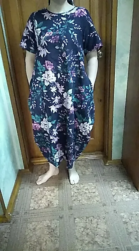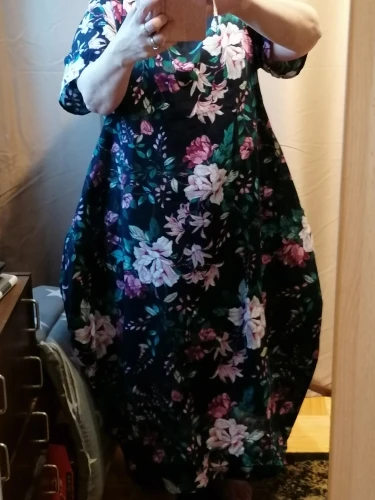 Платье очень приятное, легкое и удобное. При выборе размера советую ориентироваться на объём груди. У меня объём груди 104,взяла XL, сел по груди хорошо. Меньше не влезет, больше - будет слишком балахоном смотреться. Идеальный вариант для лета, гулять в жару или на пляж ходить. Есть карманы в боковых швах. Строчки ровные и вообще сшито хорошо.