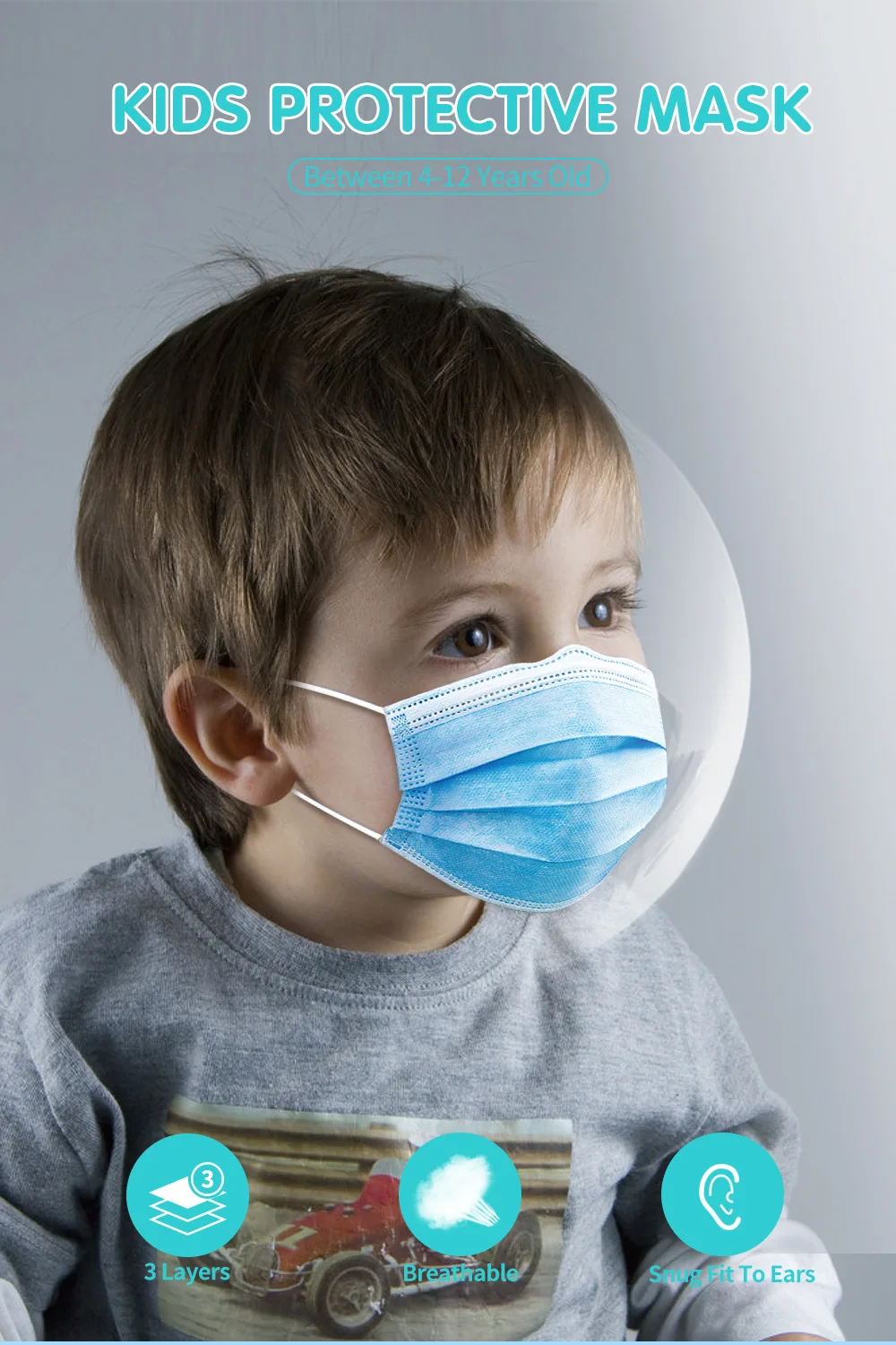 Одноразовая детская маска, детская маска для рта, 3-слойная безопасная дышащая черная, розовая цветная детская маска для лица