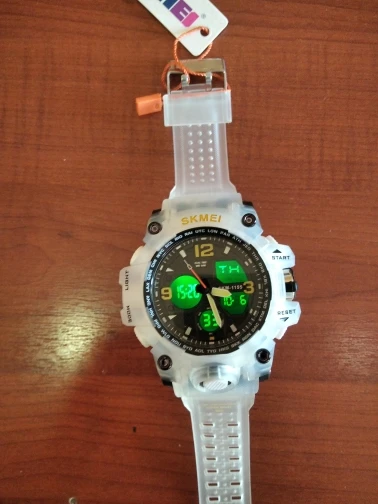 Бренд: SKMEI 100% новые и высококачественные Кварцевые аналоговые цифровые шоу с функцией EL Водонепроницаемость 50 м, можно плавать с ним. (Пожалуйста, не нажимайте кнопки под водой) Тип: мужские спортивные часы Стиль: спортивный Механизм: оригинальный цифровой механизм Аналоговый и цифровой дисплей с сигнализацией Есть 13 цветов на выбор: как на картинке Длина Часов: (приблизительно) 26 см Ширина ремешка: (прибл.) 22 мм Диаметр циферблата: (прибл.) 55 мм Материал ремешка: прочная искусственная кожа Материал корпуса: прочная резина + Высокопрочное закалённое стекло Застежка: Пряжка из нержавеющей стали Функция: Двойное время, хронограф, будильник, дата, неделя, EL,12/24 часов