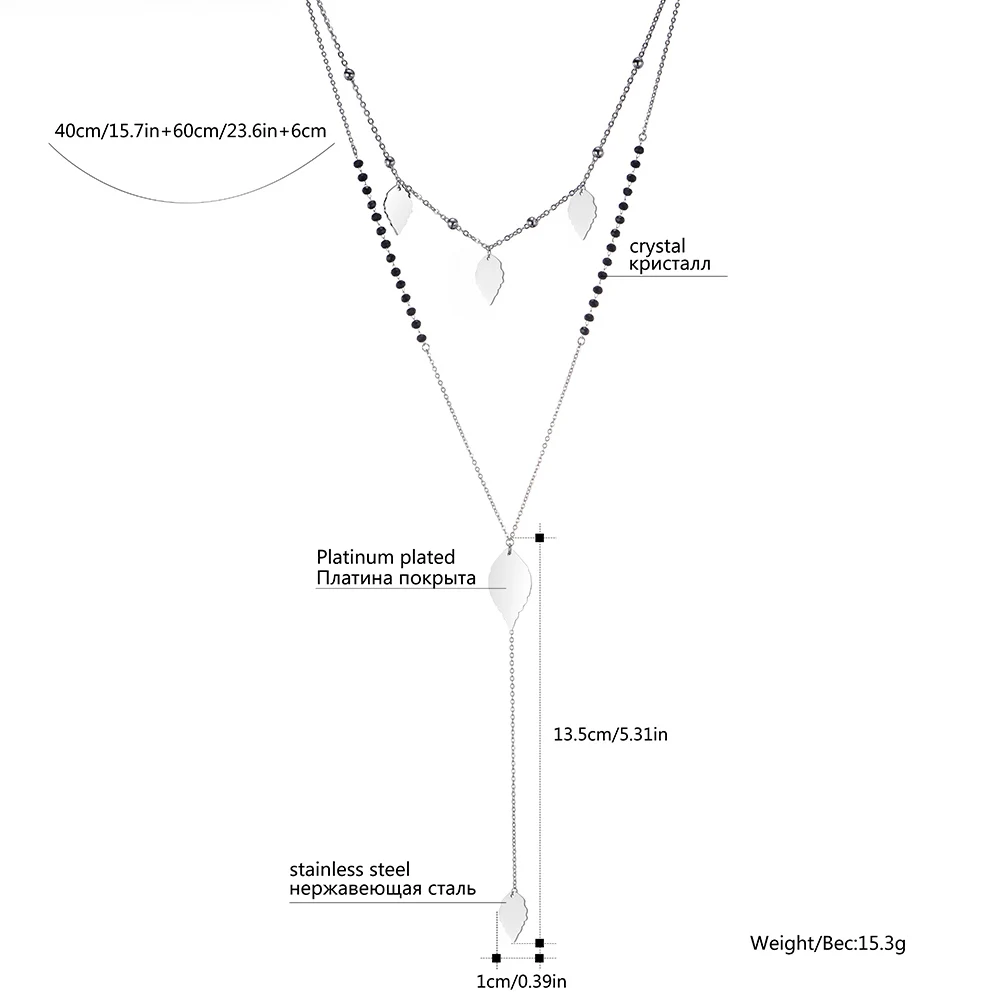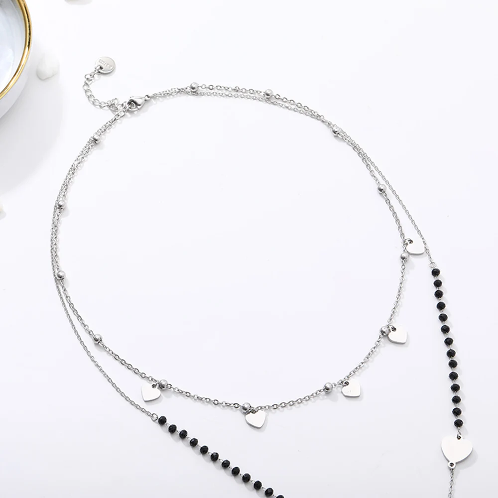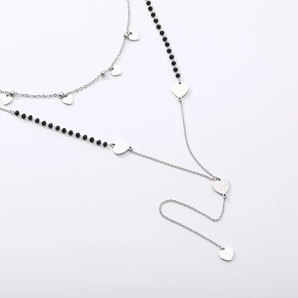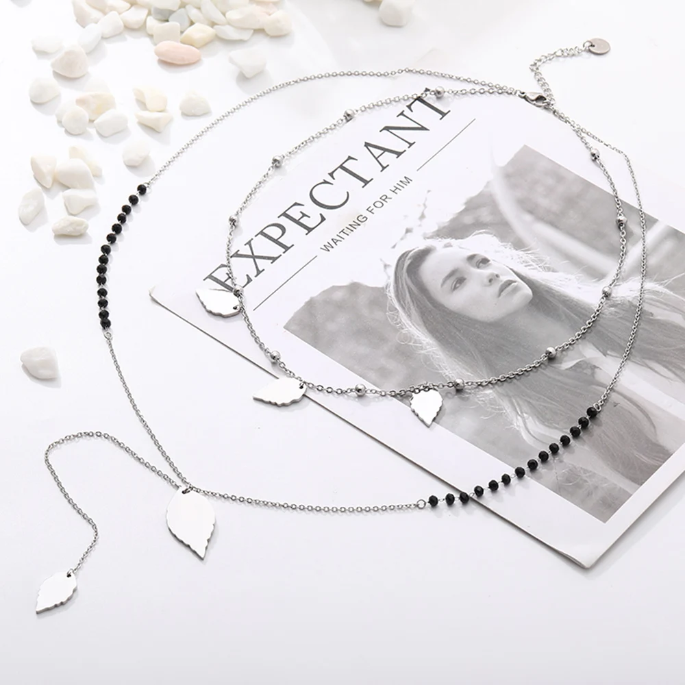 Длинная цепочка из нержавеющей стали, ожерелье для женщин, серебряный цвет, луна, звезда, лист, любовь, сердце, кулон, черные бусины, ожерелье, ювелирные изделия