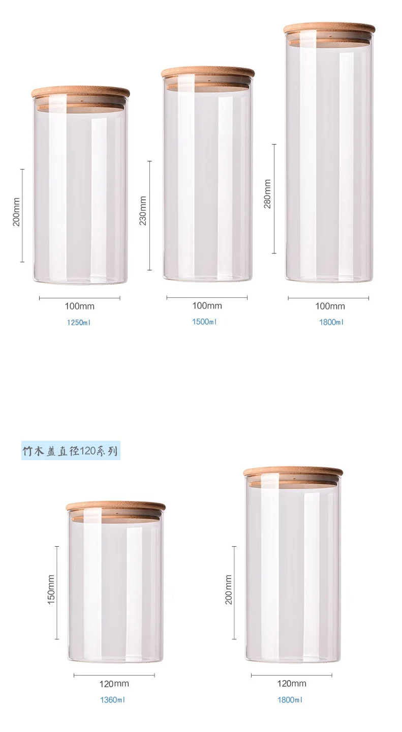 Женская бамбуковая крышка, герметичные банки, пищевые банки для чая, прозрачные банки для хранения, кухонные цельнозернистые бутылки