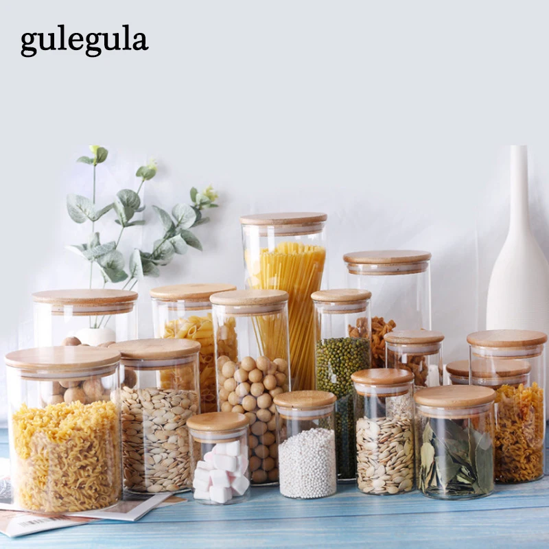 Пищевой контейнер, Бамбуковая крышка, герметичная стеклянная банка ...