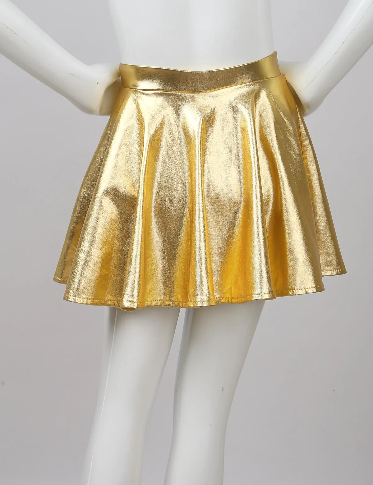 Детские блестящие расклешенные плиссированные мини-юбки трапециевидного силуэта для девочек, юбки для танцев, спортивные блестящие юбка скутер с высоким поясом