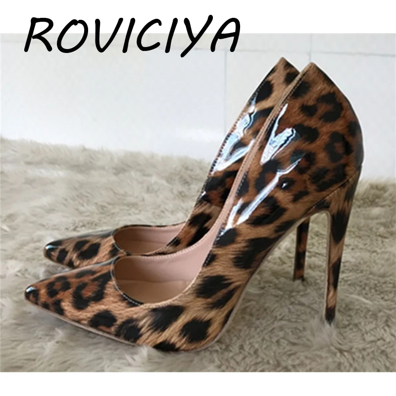 Женские туфли-лодочки на высоком каблуке 12 см, с леопардовым принтом