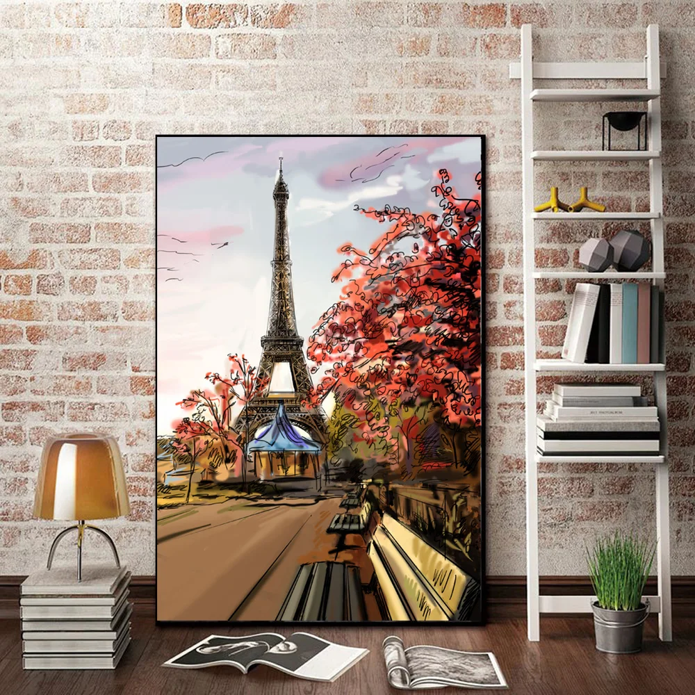 Абстрактный городской пейзаж, настенные картины на холсте, Современ...