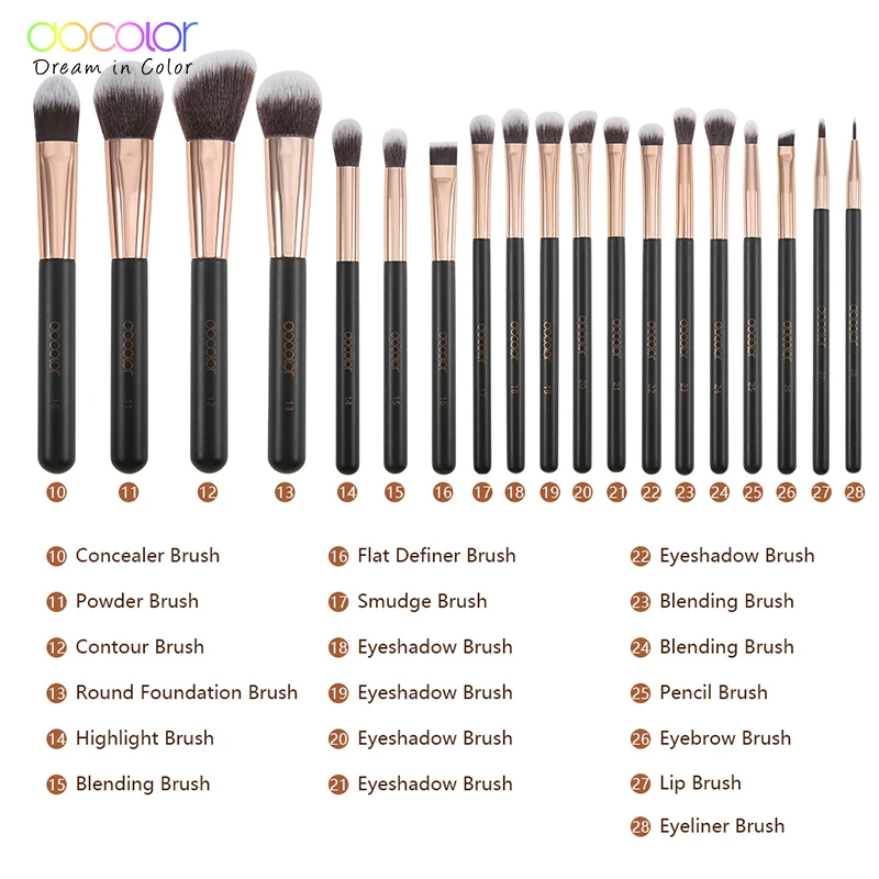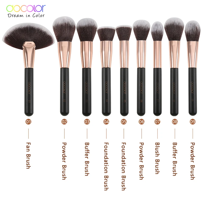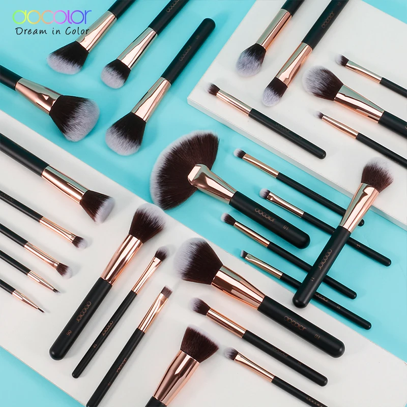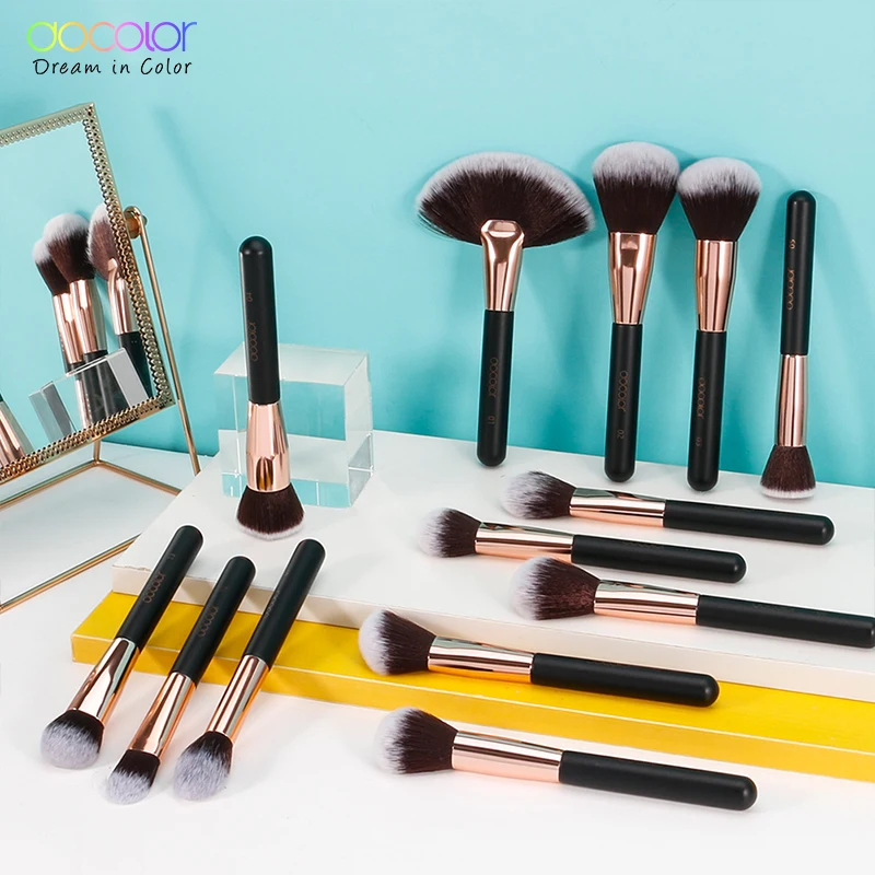 Набор кистей для макияжа Docolor, розовое золото, основа, пудра, контур, глаза, растушевка, косметика, кисть для декоративной косметики, кисти
