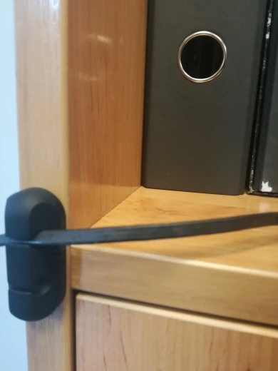 Держатель кабеля не будет правильно наклеивать на предоставленную наклейку. Сам стикер отлично держится на шкафу!