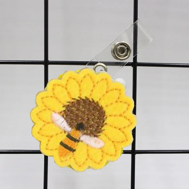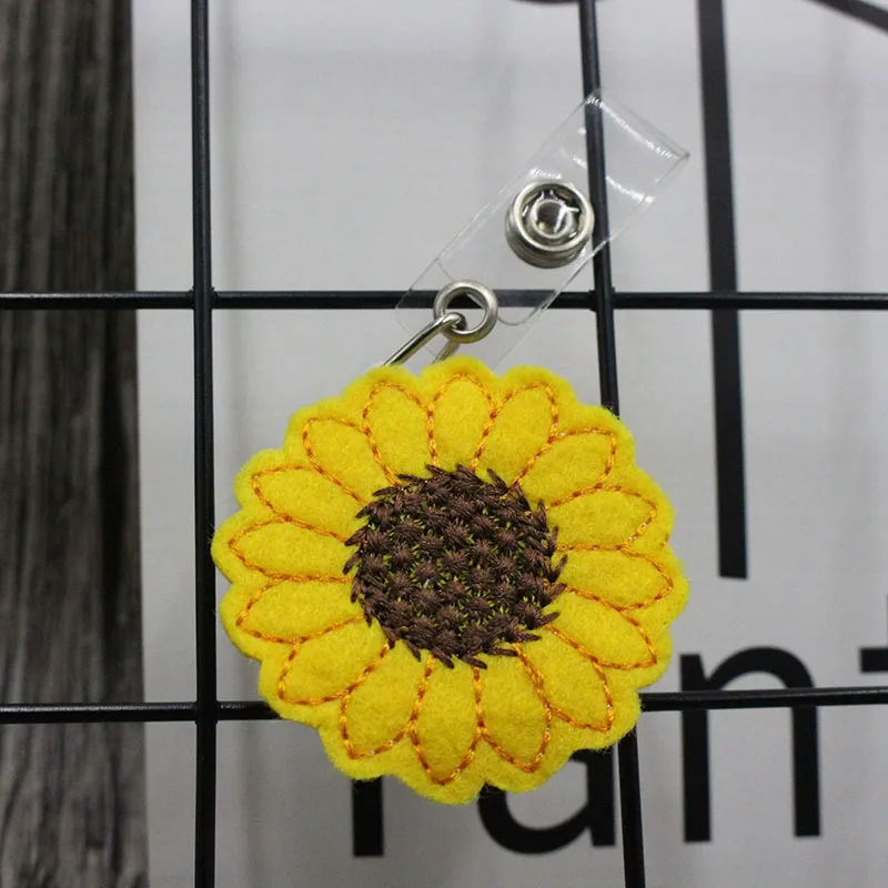 Новинка, 1 шт., с изображением подсолнуха медсестер брелок для ключей для бейджа клип выдвижной держатель значка с 360 Вращающийся защищенный зажим крокодил имя держателя карты