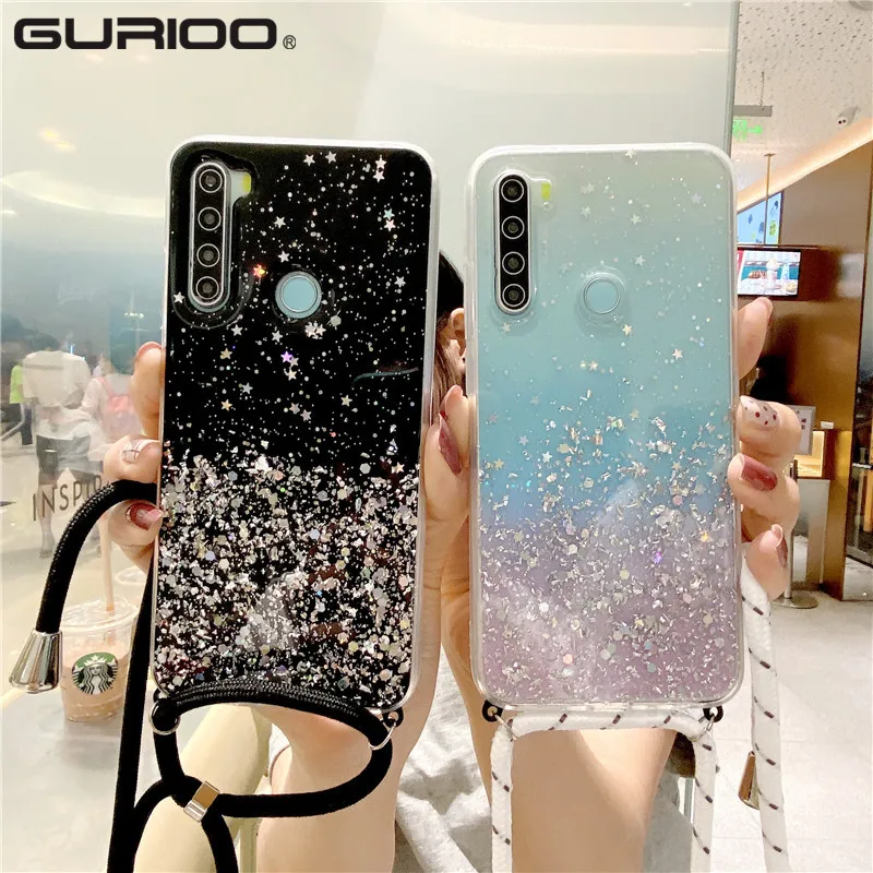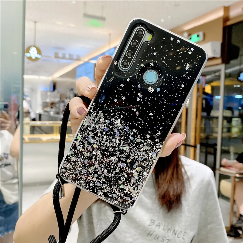 Блестящий чехол со шнурком для Xiaomi Redmi Note 10 9 8 7 Pro, чехо...
