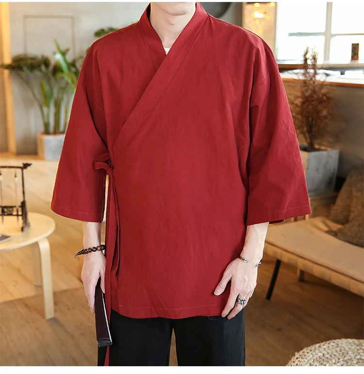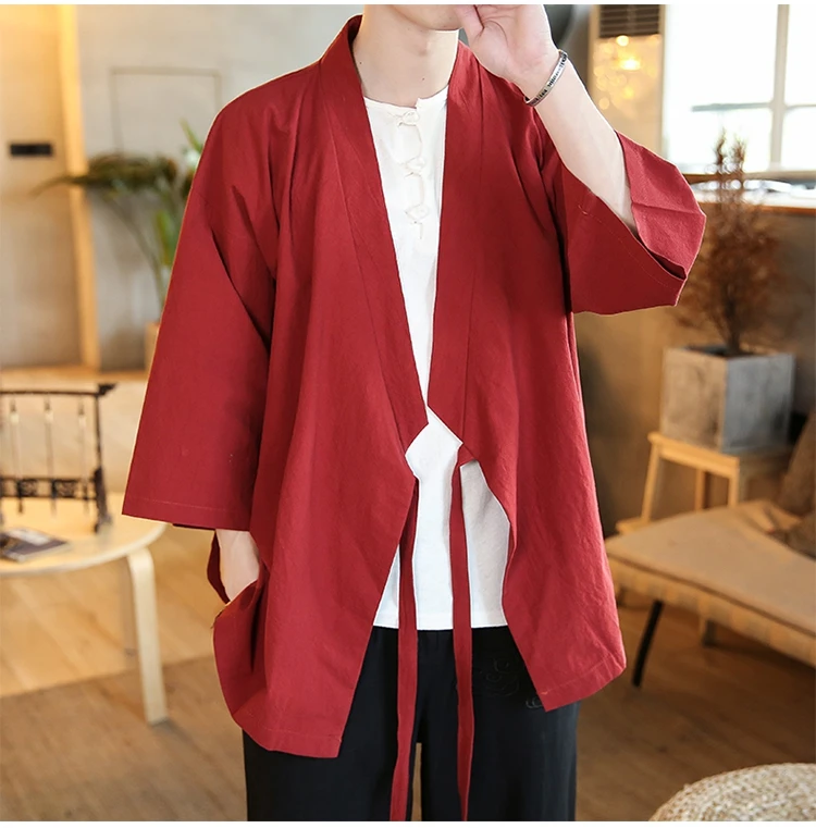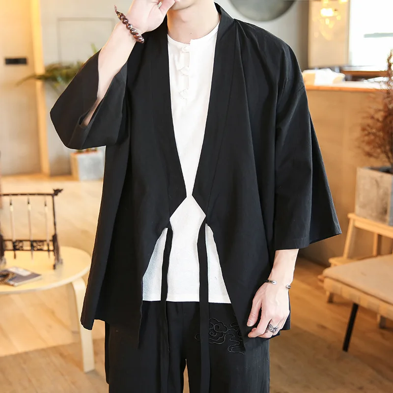 Кимоно Костюм самурая в китайском стиле Мужское, повседневная хлопковая юката, жакет в японском стиле хаори, одежда в стиле Харадзюку, на лето