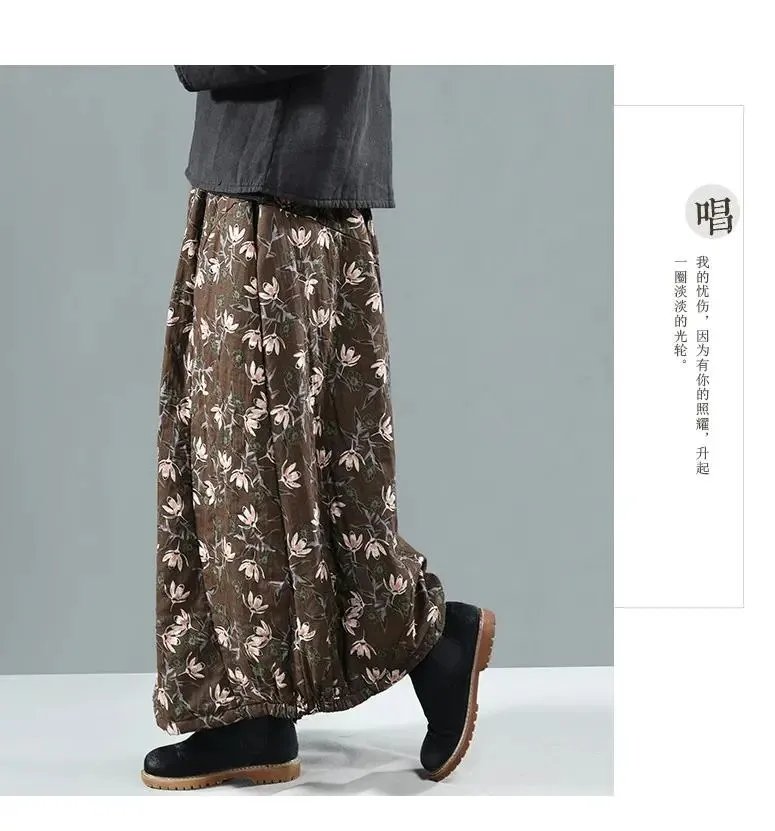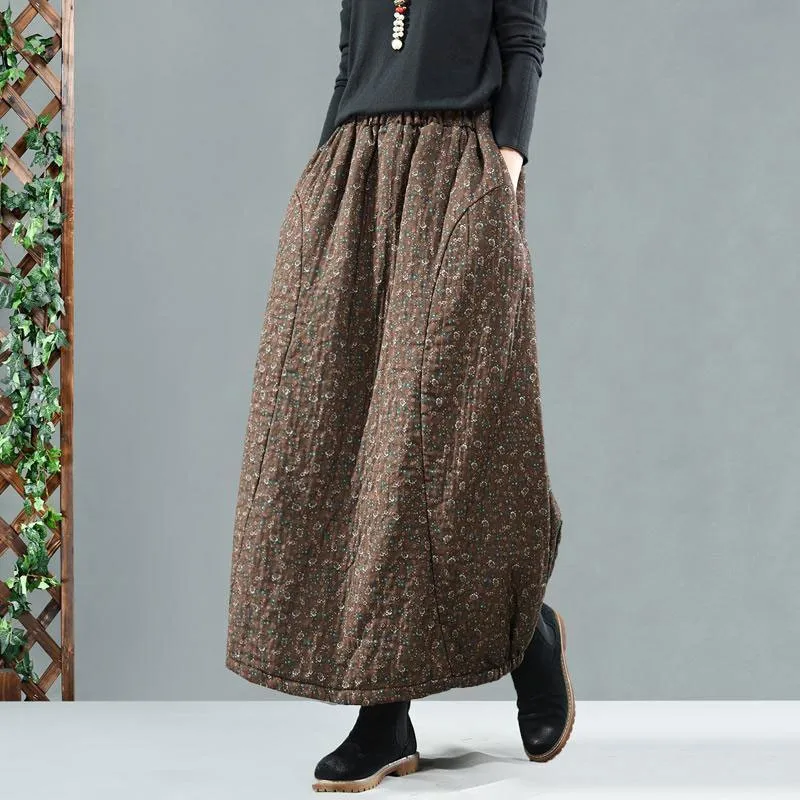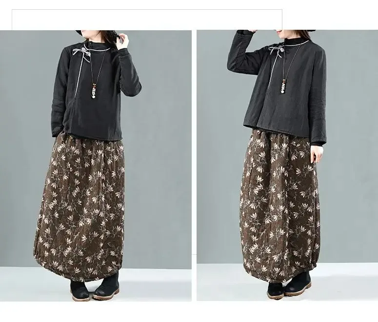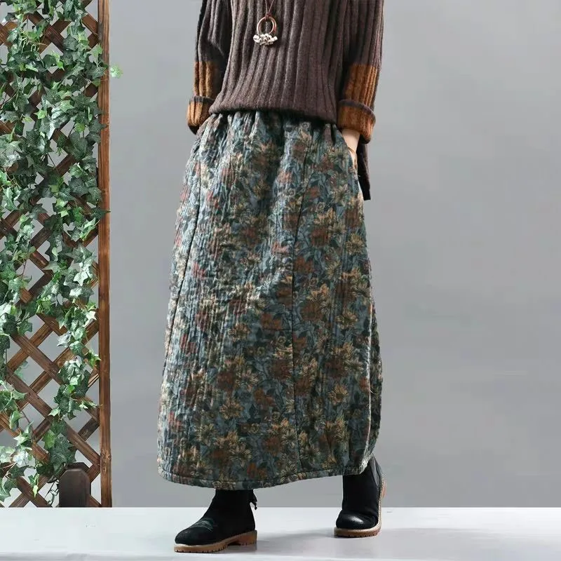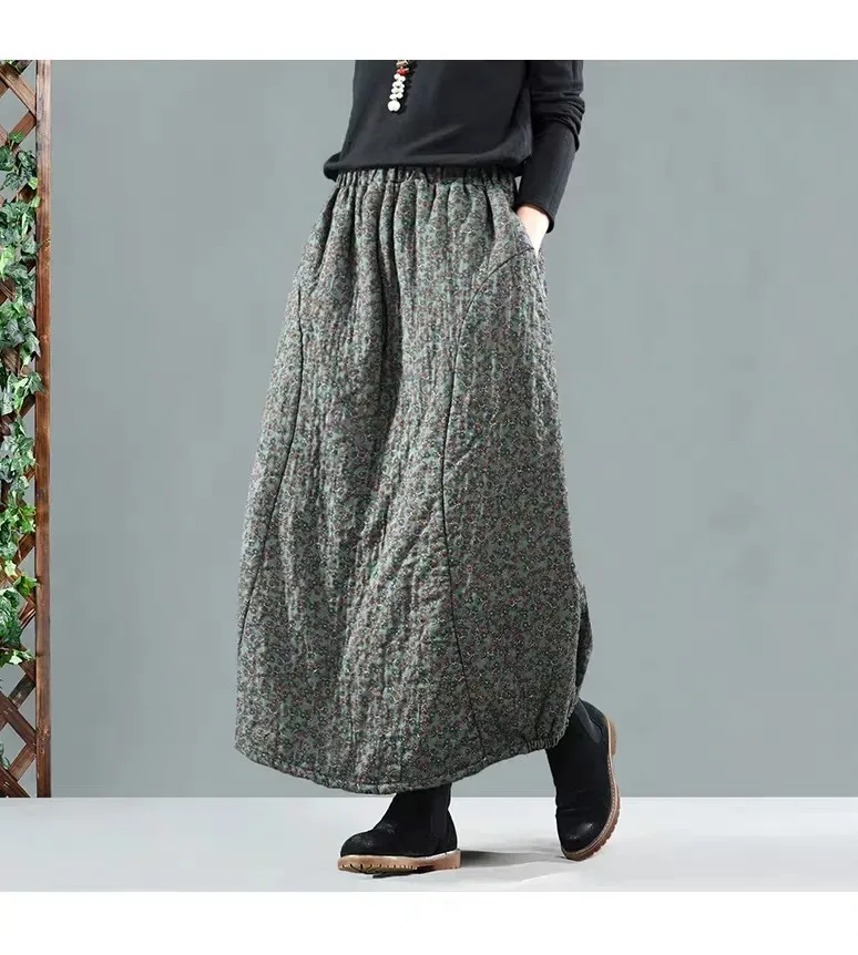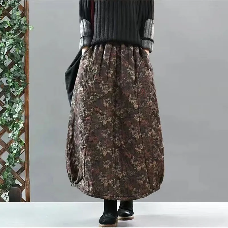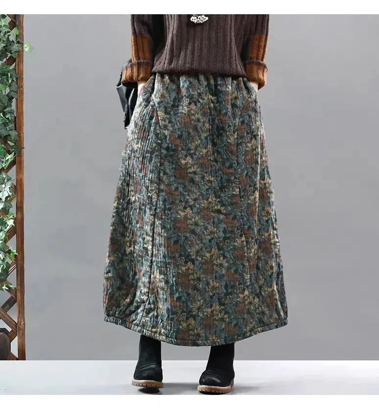 Женская длинная юбка, хлопковая утепленная свободная трапециевидная юбка с винтажным принтом, на осень-зиму, M267
