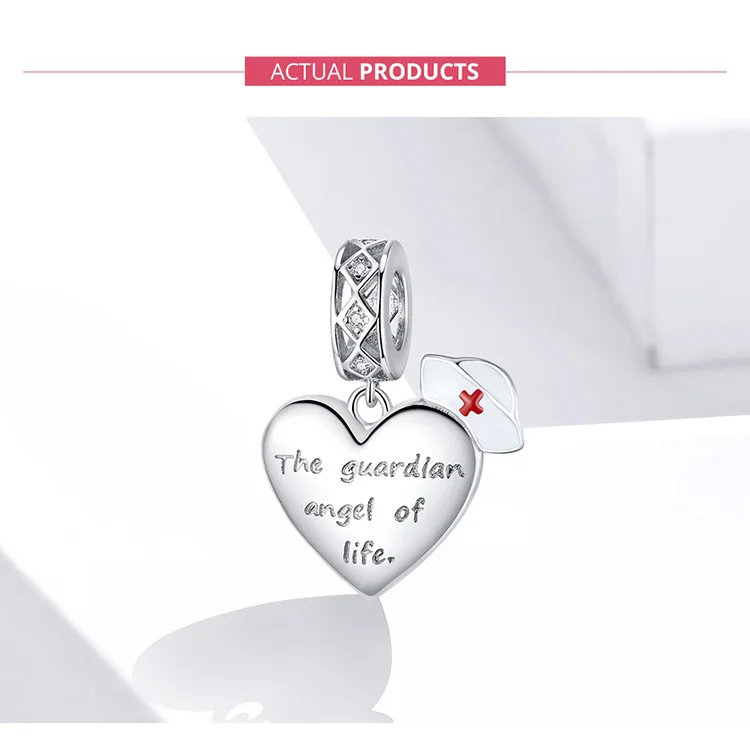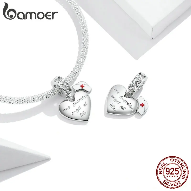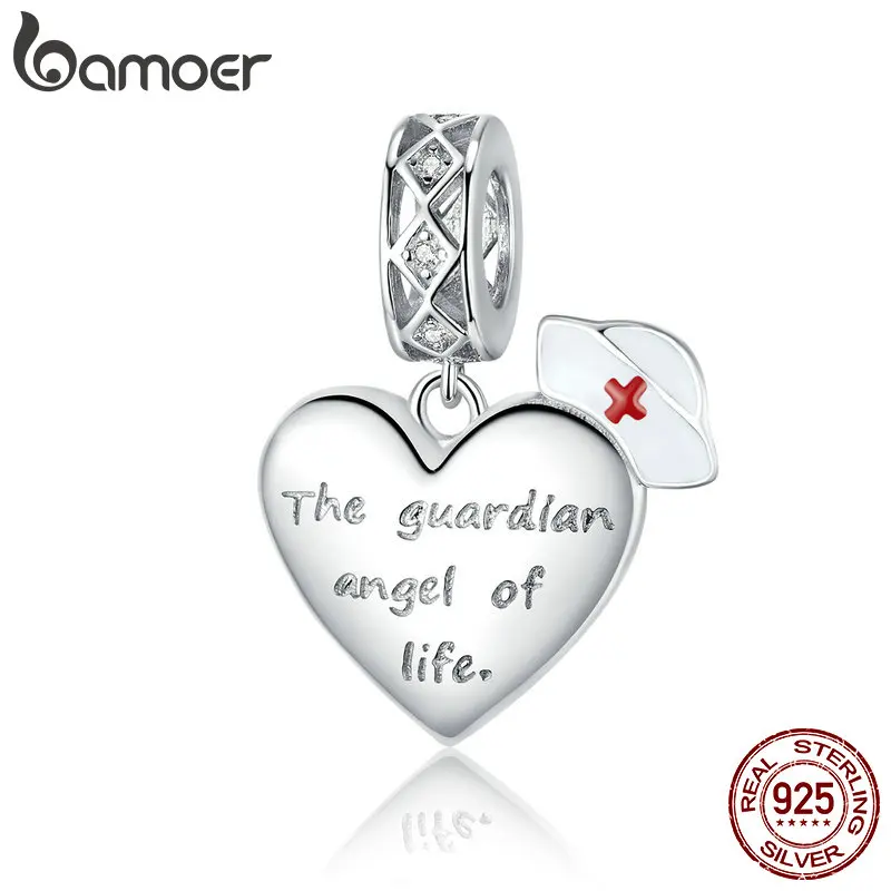 Bamoer ангел-хранитель, подвеска, серебро 925 пробы, Оригинальная шапка медсестры, модная покрытая платиной, ювелирное изделие, подарки, аксессуары для девочек, BSC307
