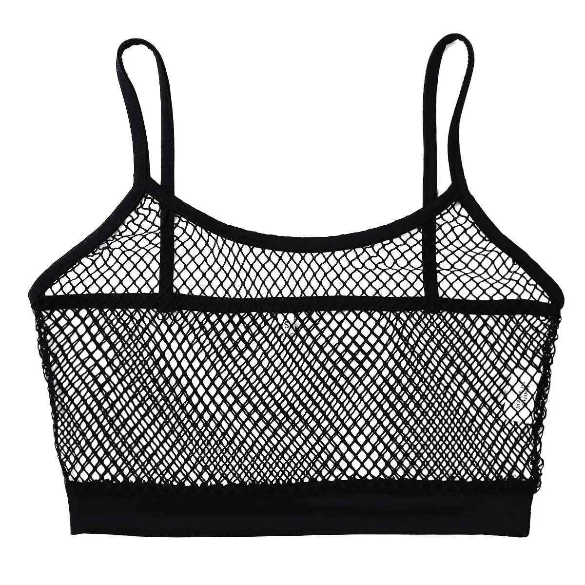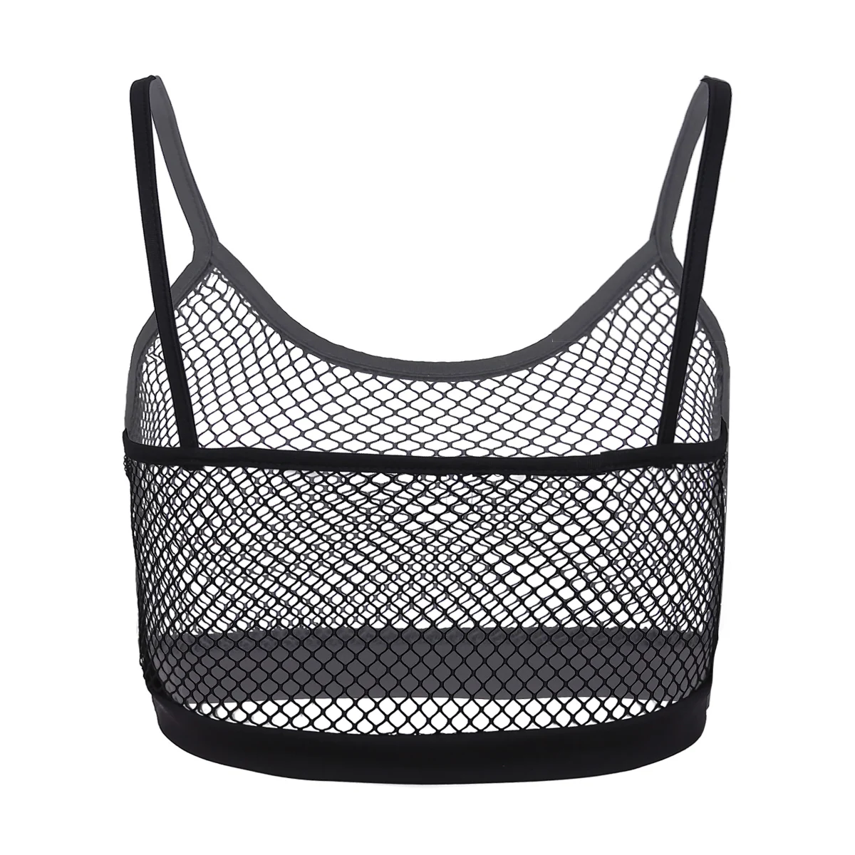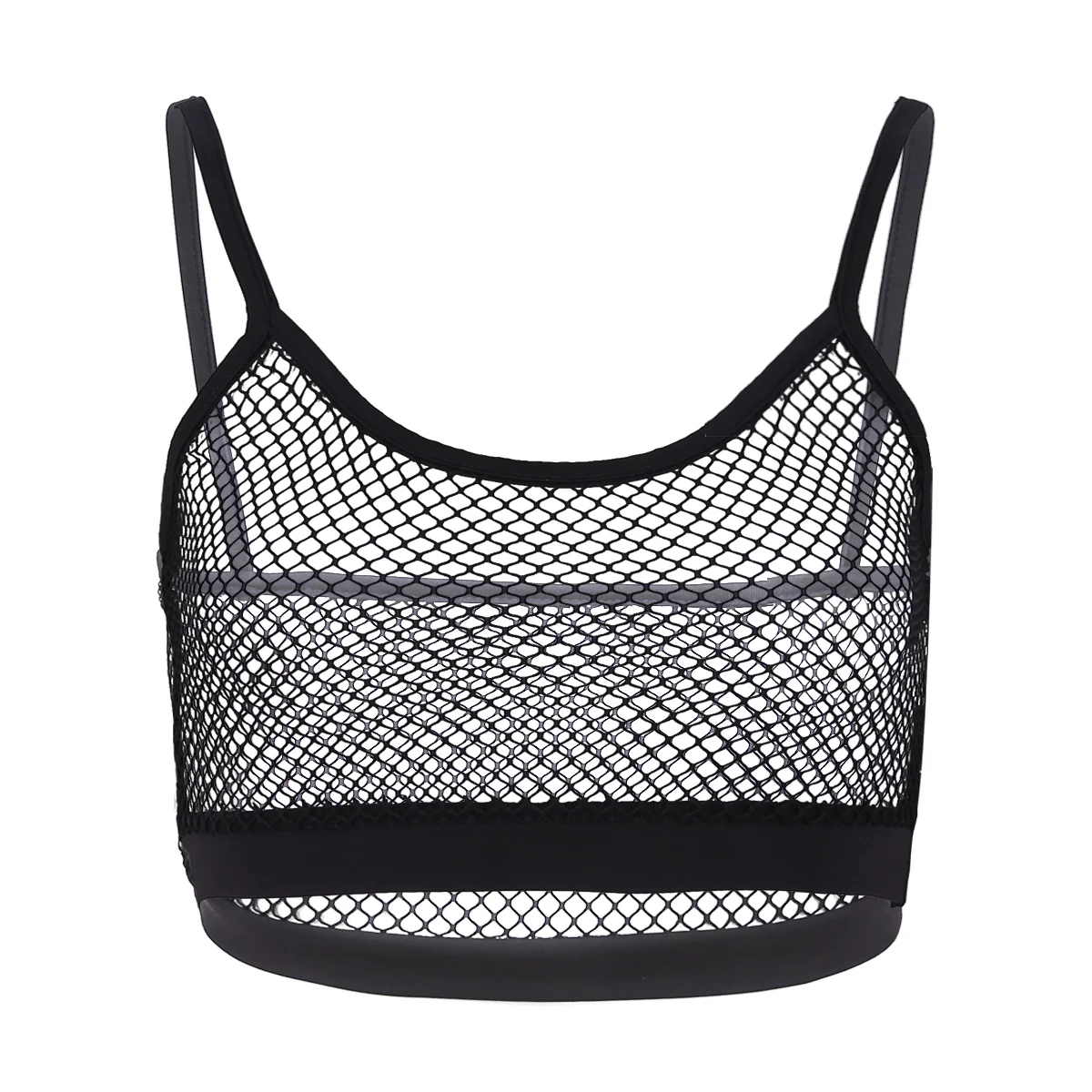 Кроп-Топ женский сетчатый на бретелях, эротический Бралетт, пикантная майка без рукавов, на бретелях-спагетти