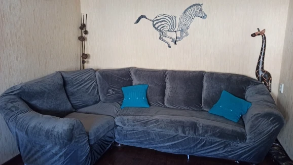 На диван размером 2,5 метров покупайте самый большой чехол. Ткань классная, но он сильно маломерит.