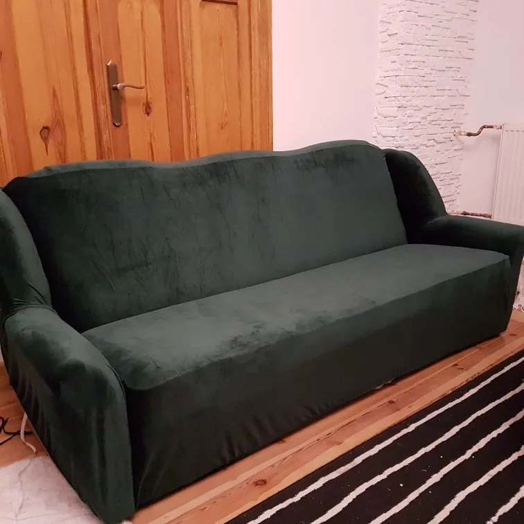 Чехол отличный! Для моего дивана нам нужно 3 штуки, и его было трудно надеть, но эффективность отличная. Очень красивый цвет-темно-зеленый выглядит очень гламурно и стильно. Я искренне рекомендую этого продавца. Спасибо!