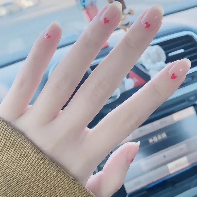 24 шт. Модные накладные ногти телесного цвета с узором в виде сердца с клеем подходящие для девушек ногти в коротком стиле