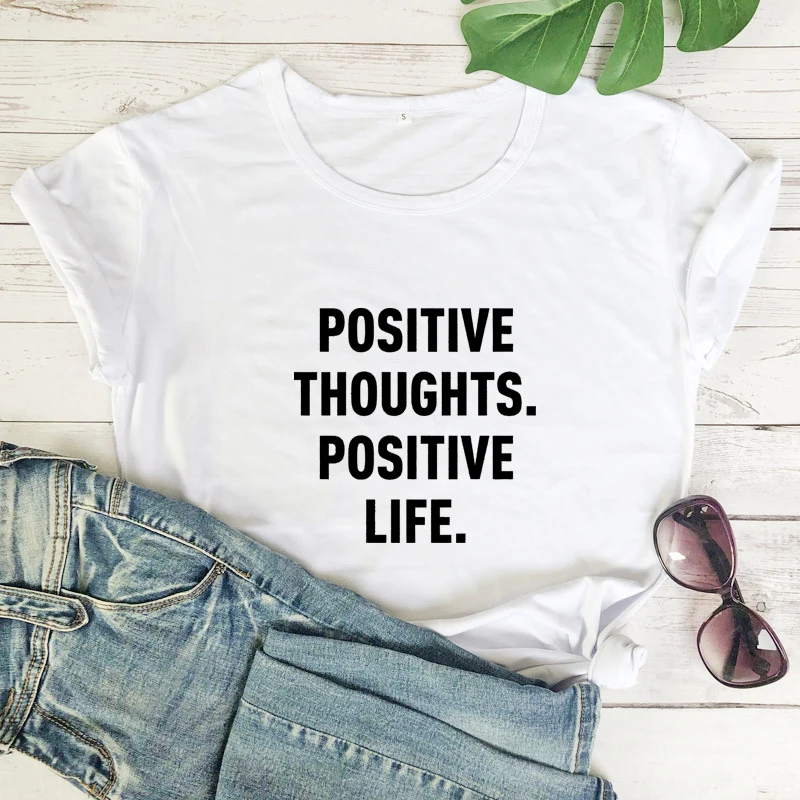 Футболка с надписью Положительные мысли, повседневная, унисекс, с коротким рукавом, с вдохновляющей цитатой, летние женские, христианские топы, футболки