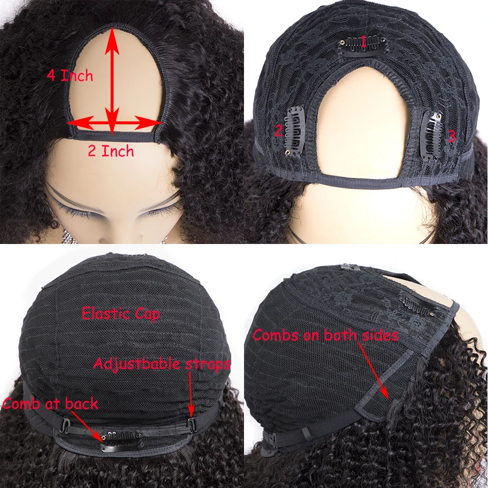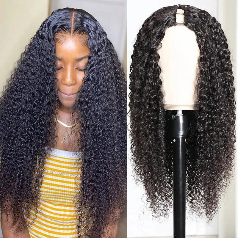 Парик с кудрявыми U-образными волосами, парики размера открытия 2x4 1X3, 3B 3C, парик с кудрявыми волосами средней длины, парик без повреждений, натуральные черные волосы