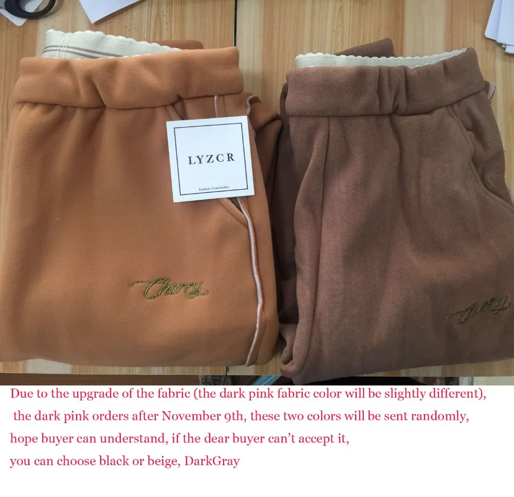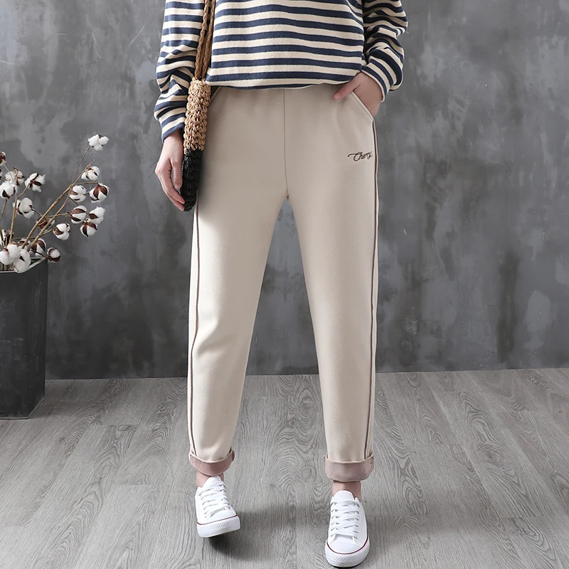 Очень понравились. Выполнены из интересного материала, бархатистые и приятные. В составе на ярлыке указывают всё в иероглифах, в описании товара на али - полиэстер и шерсть. Не знаю, что там на самом деле, но тактильно это какая-то имитация фетра сверху и бархата/велюра изнутри. Но я тот еще спец в тканях Материал мнется, отпаривается с трудом. Я правда пыталась, хоть по фото моих усилий и не видно )) На выбор 4 расцветки, это бежевый вариант. Оттенок совпадает с промофото. Изнанка у всех розовая. Размерный ряд широкий: S-XXXL. На сестре размер L на ОБ~99см. Размер подошел. На рост 165 длина укорочена, так что девушкам выше вряд ли подойдут ) На талии широкая эластичная резинка. Есть боковые кармашки. Швы по бокам похожи на лампасы. Нет никаких декоративных элементов, только маленькая надпись-вышивка. Качество хорошее. Не было дефектов, посторонних запахов или других недочетов. Доставка заняла менее 2х недель до Томской области. Упаковка - инди