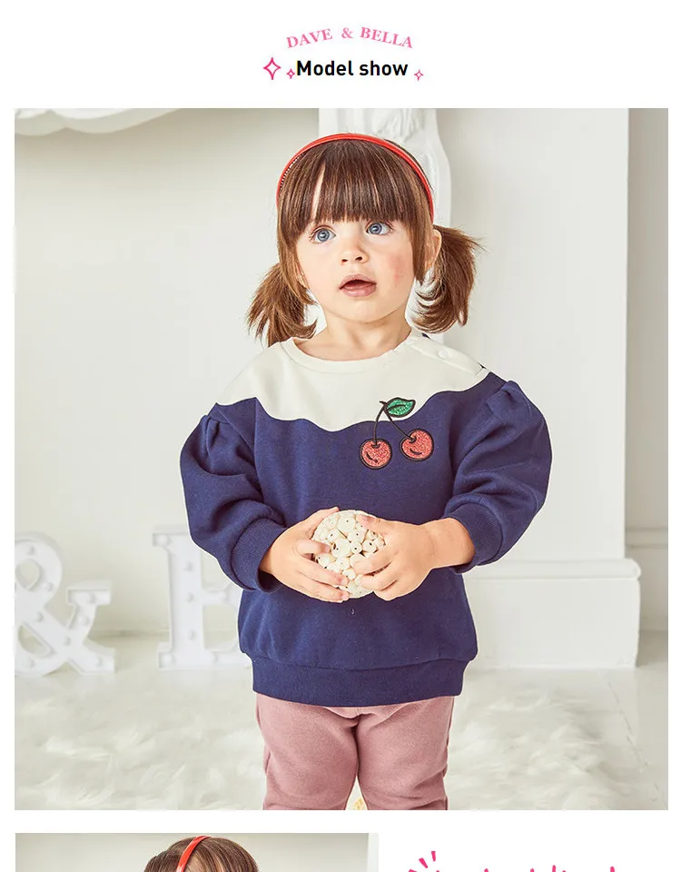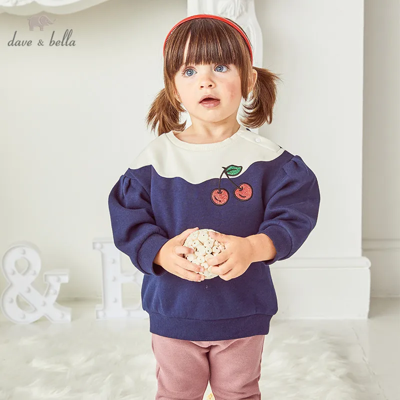 DB14897 dave bellaОсенняя Милая футболка в стиле пэчворк с принтом фруктов для маленьких девочек детские топы для девочек, модные футболки для детей
