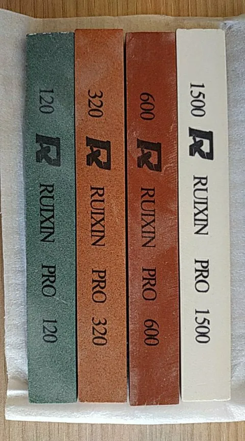 качественный товар, сразу же попробовал заточить кухонный нож - все получилось. комплектных камней, как мне кажется, хватит на несколько раз, так что либо нужно сразу заказывать ещё, либо что то другое придумывать. в остальном все супер