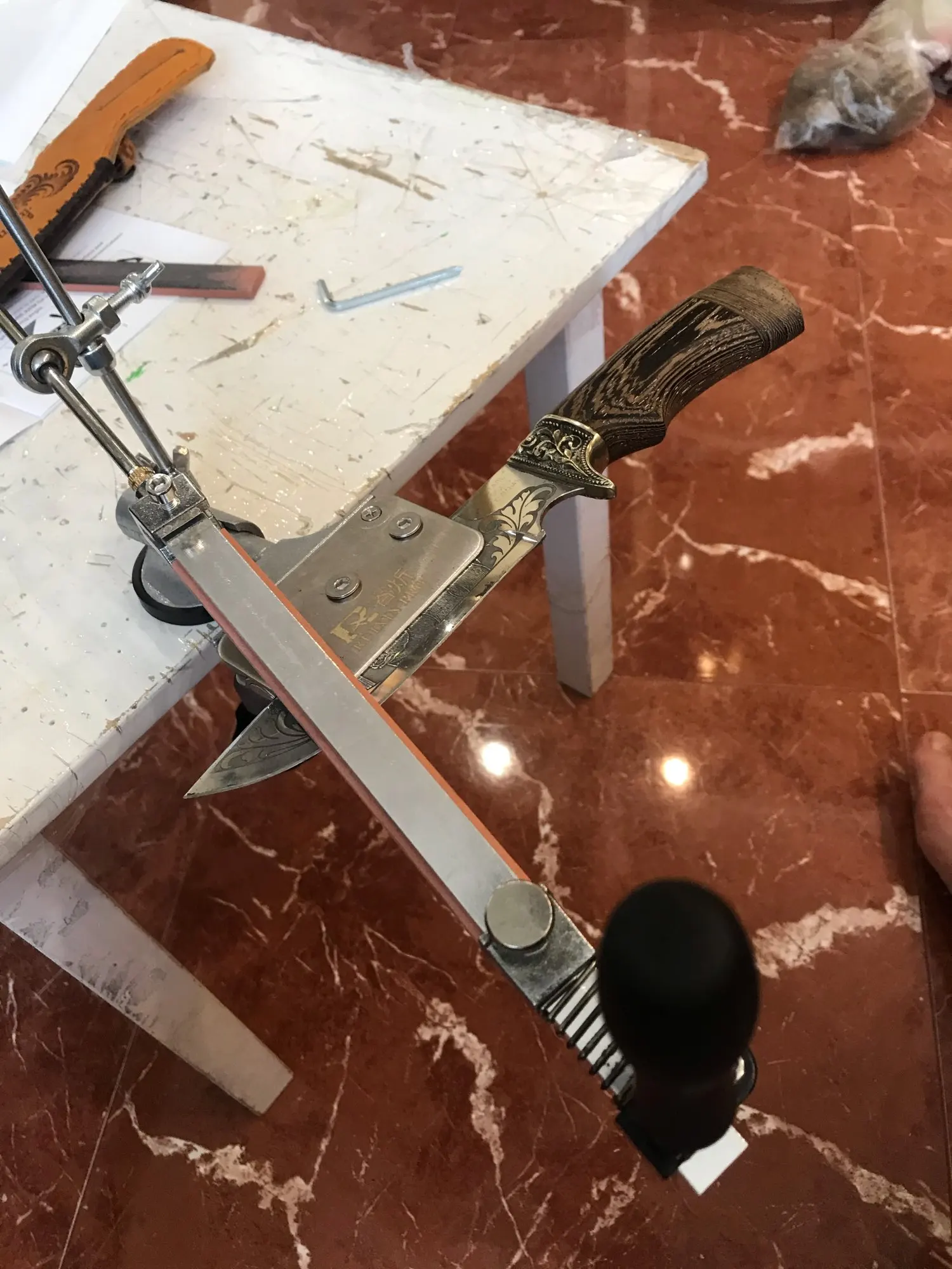 Точилка супер. Ножи точит в бритву. Смело можно бриться ножами. Жена не довольно, сразу порезалась. Вывод - женщинам не угодишь. Но потом похвалила за супер острые ножи. Так что точилка ножей просто огонь. Я доволен на все 100. За одно и побрился. П.с. товар полностью соответствует описанию и фото. Все болты, камни и прочее в наличии. Замечаний нет. Продавца и товар рекомендую. Планирую у него еще купить алмазные камни, как появятся в наличии на территории России. На текущий момент хватает камней, что шли в наборе.
