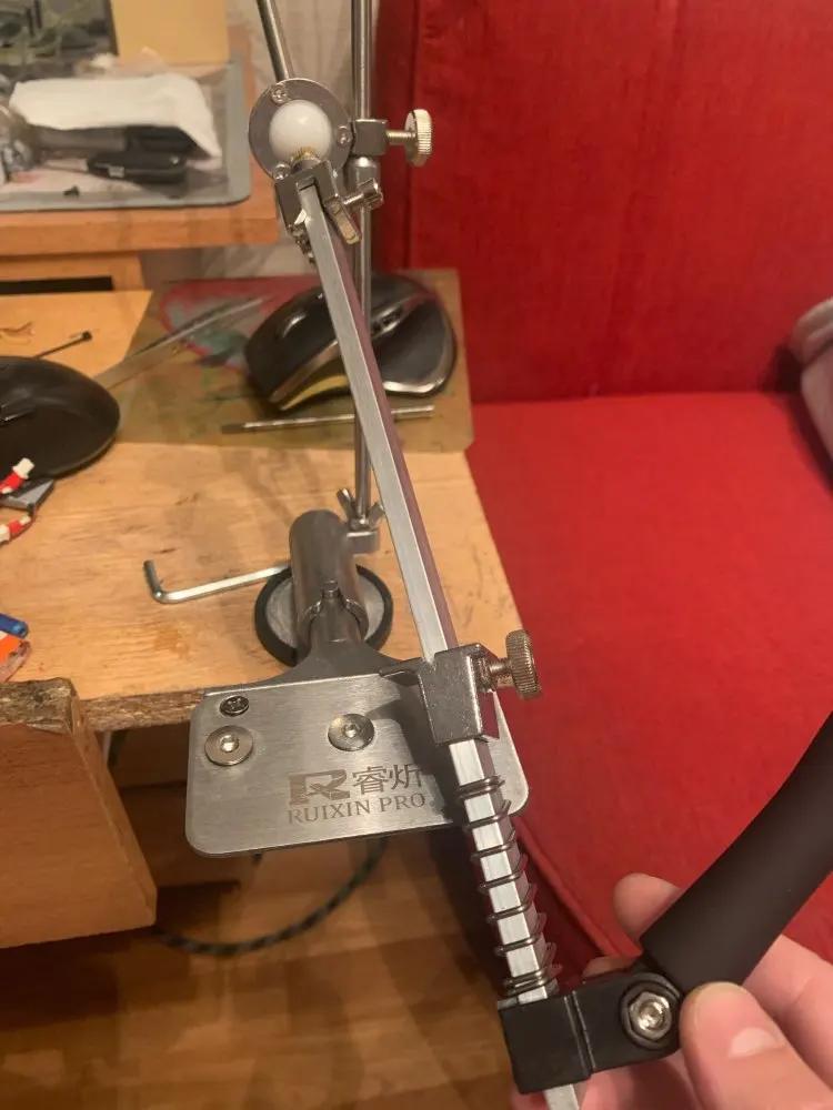 Товар за свои деньги хорош, нужно доробатывать, все есть в интернете. Минуса, все люфтит. Губки зажимные не выставляют нужный градус с градусом центральной оси. Расход 4°. Перетачивал угол зажимной губки, довел до 1,5° нужно еще точить.