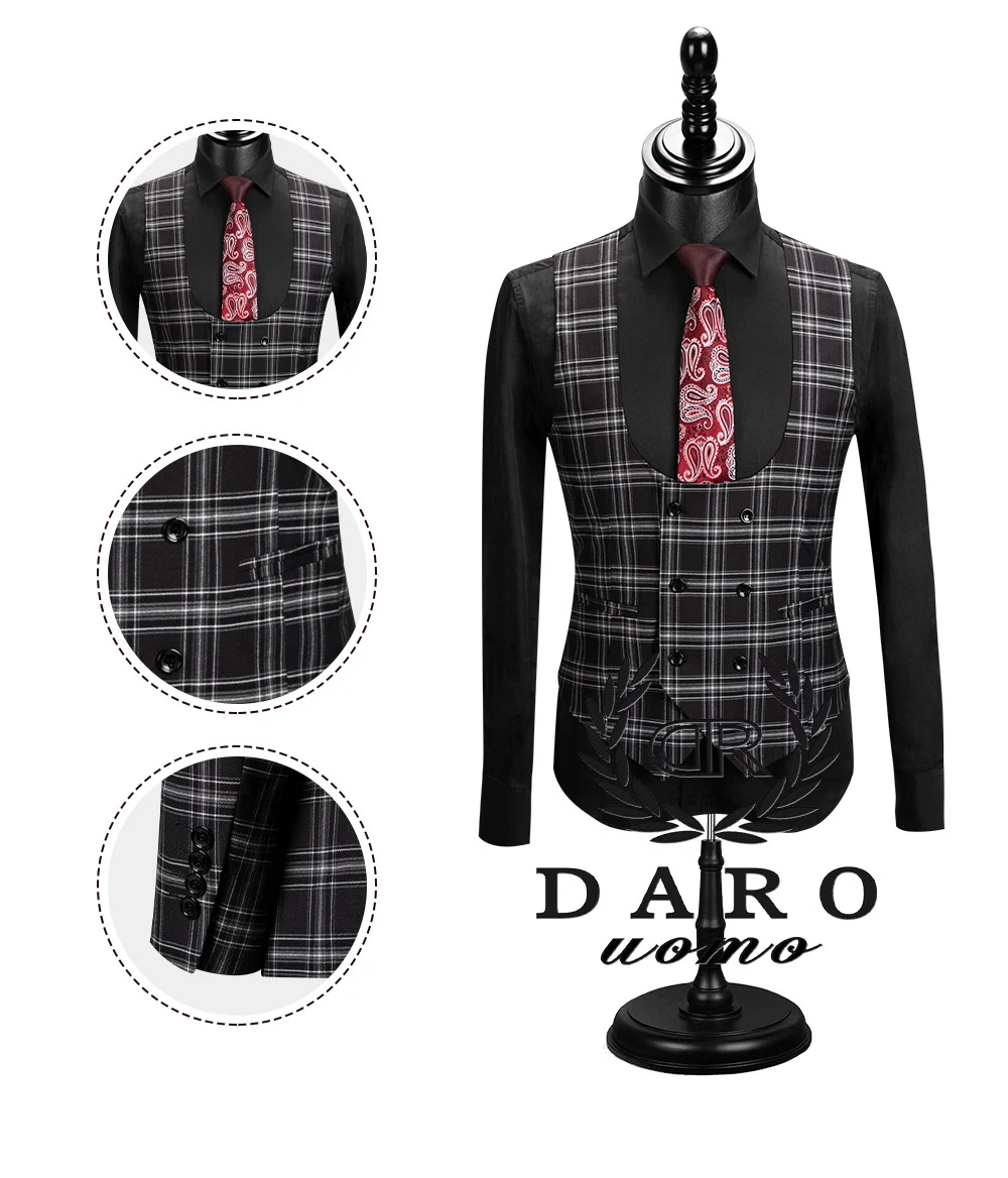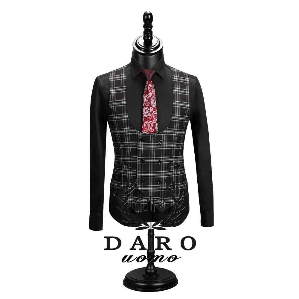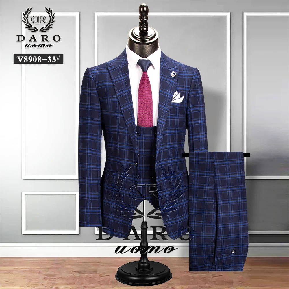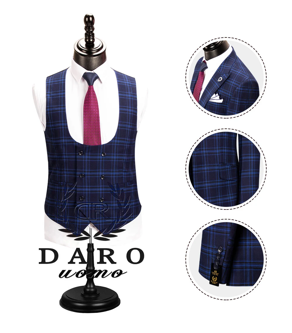Мужской костюм Даро 2020 Новый стиль в клетку пиджак, жилет, брюки 3 предмета Slim Fit цвет: черный, синий Бизнес клетчатый Блейзер Повседневное сделанный на заказ DRV8908