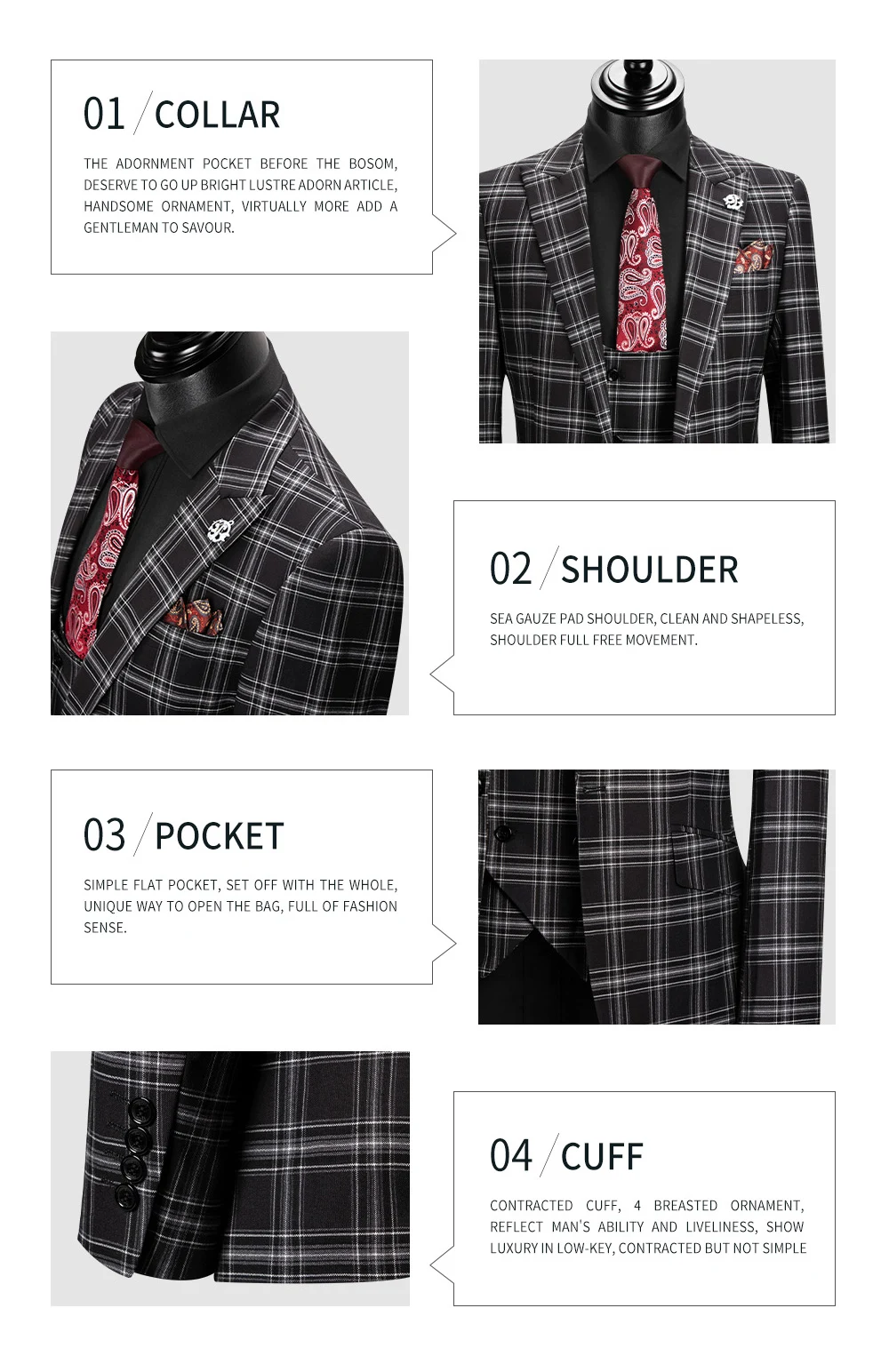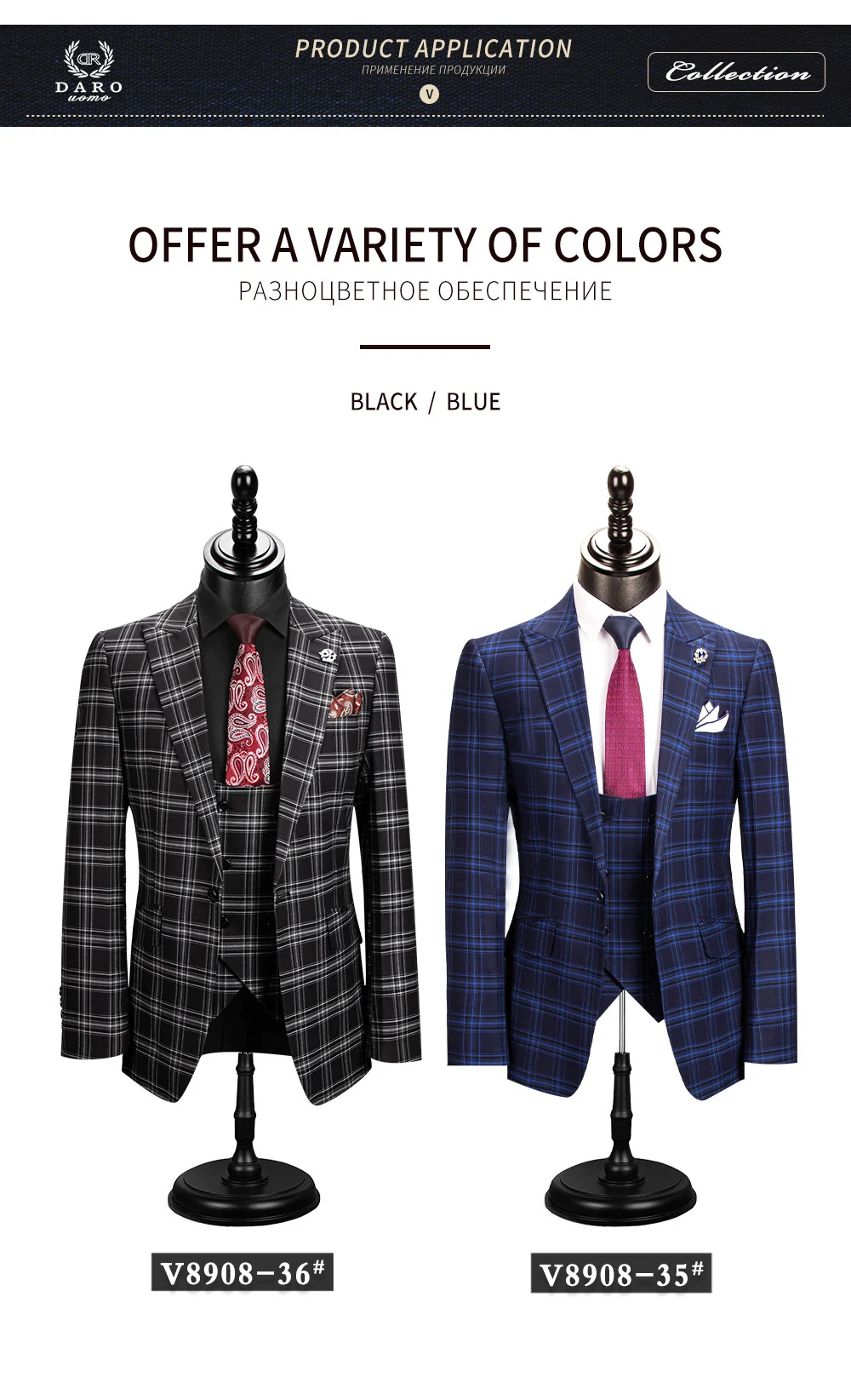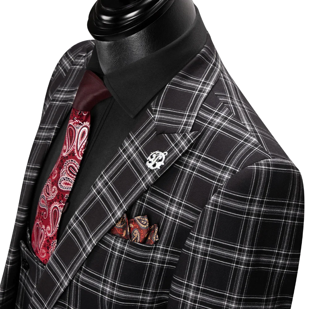 Мужской костюм Даро 2020 Новый стиль в клетку пиджак, жилет, брюки 3 предмета Slim Fit цвет: черный, синий Бизнес клетчатый Блейзер Повседневное сделанный на заказ DRV8908