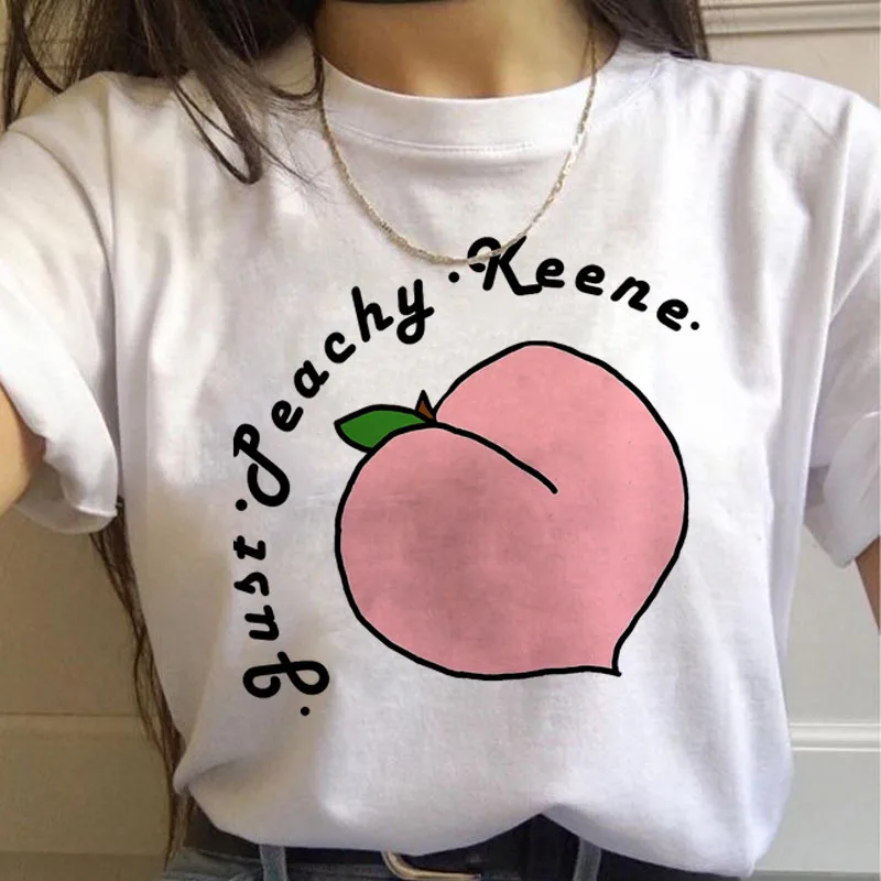 Женская футболка с персиковым фруктом, летняя повседневная футболка с круглым вырезом, Женская милая футболка в стиле Харадзюку, белая футболка с героями мультфильмов, Camisas Mujer