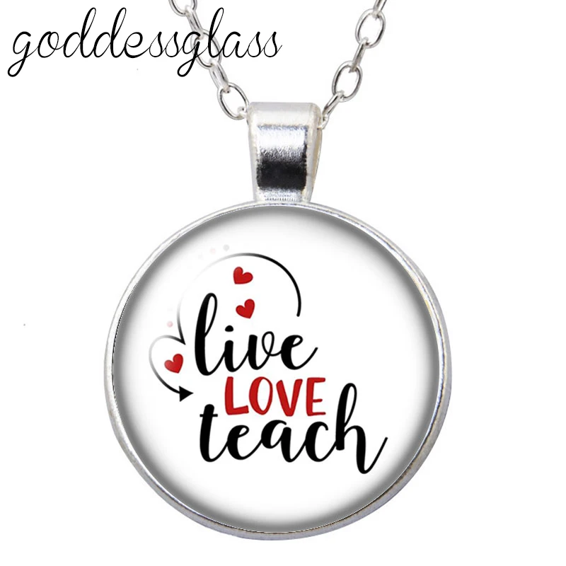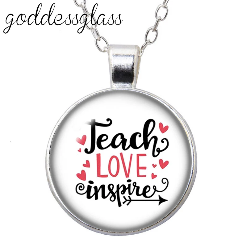 Научите любовь inspire любовь супер учитель круглые стеклянные кабошоны разрисованные изделия из стекла с серебряным покрытиемподвеска с кристаллом ожерелье ювелирные изделия для подарка